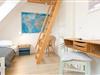 Schlafzimmer 1 (DG): 2 Einzelbetten (je 90x200 cm), Kleiderschrank, Verdunkelung: Rollo, Platz für ein Babybett vorhanden, auf der Empore: Schlafsessel und Schreibtisch
