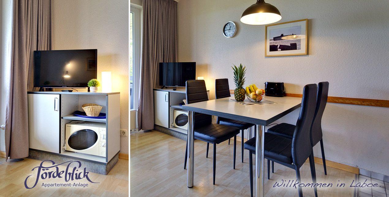 mit einem schönen Ausblick auf die Kieler Förde. Sie können dort viele vorbeifahrende Schiffe beobachten. Das gemütliche Appartement hat eine große Fensterfront (2x3m) zum Balkon und ist dadurch sehr hell und freundlich. Es gibt ein separates Schlafzimmer. Auf der bequemen Schlafcouch im Wohn-Esszimmer haben 2 weitere Personen Platz. Das Appartement verfügt über eine Küchenzeile sowie ein Bad mit Dusche und WC. Die geräumige Diele verfügt über große Einbauschränke mit viel Platz für ihre Kleidung. Kabel-TV und Radio stehen zu ihrer Verfügung. Das leistungsstarke kostenloses WLAN verfügt über einen sehr einfachen Zugang.