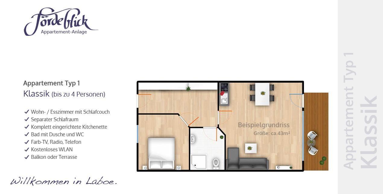 Das Klassik Appartement Seebär 32 OG, B für 4 Personen 43 qm liegt im Obergeschoß von Haus B