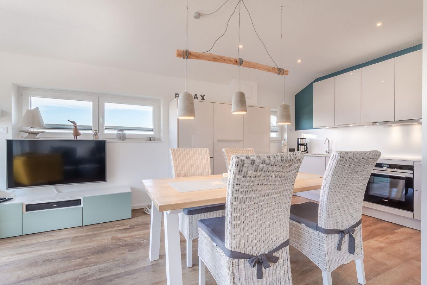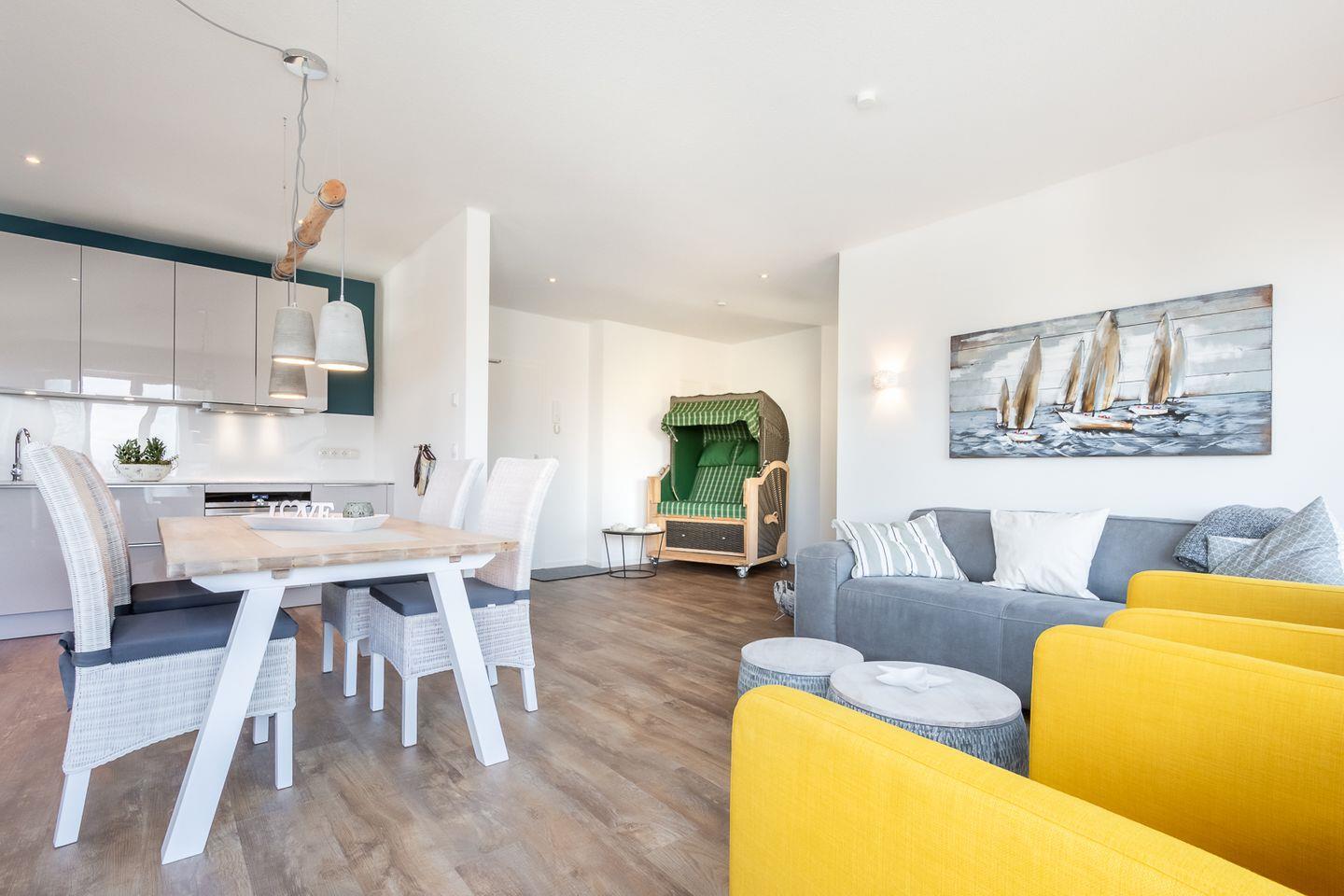 Exklusive Penthaus Ferienwohnung in einem Neubau für bis zu 4 Personen mit 2 Schlafzimmern in TOP-Lage in unmittelbarer Nähe zum Hafen und zum Zentrum von Laboe. Der Neubau liegt sehr zentral und trotzdem nur 200 m vom Kurstrand entfernt.