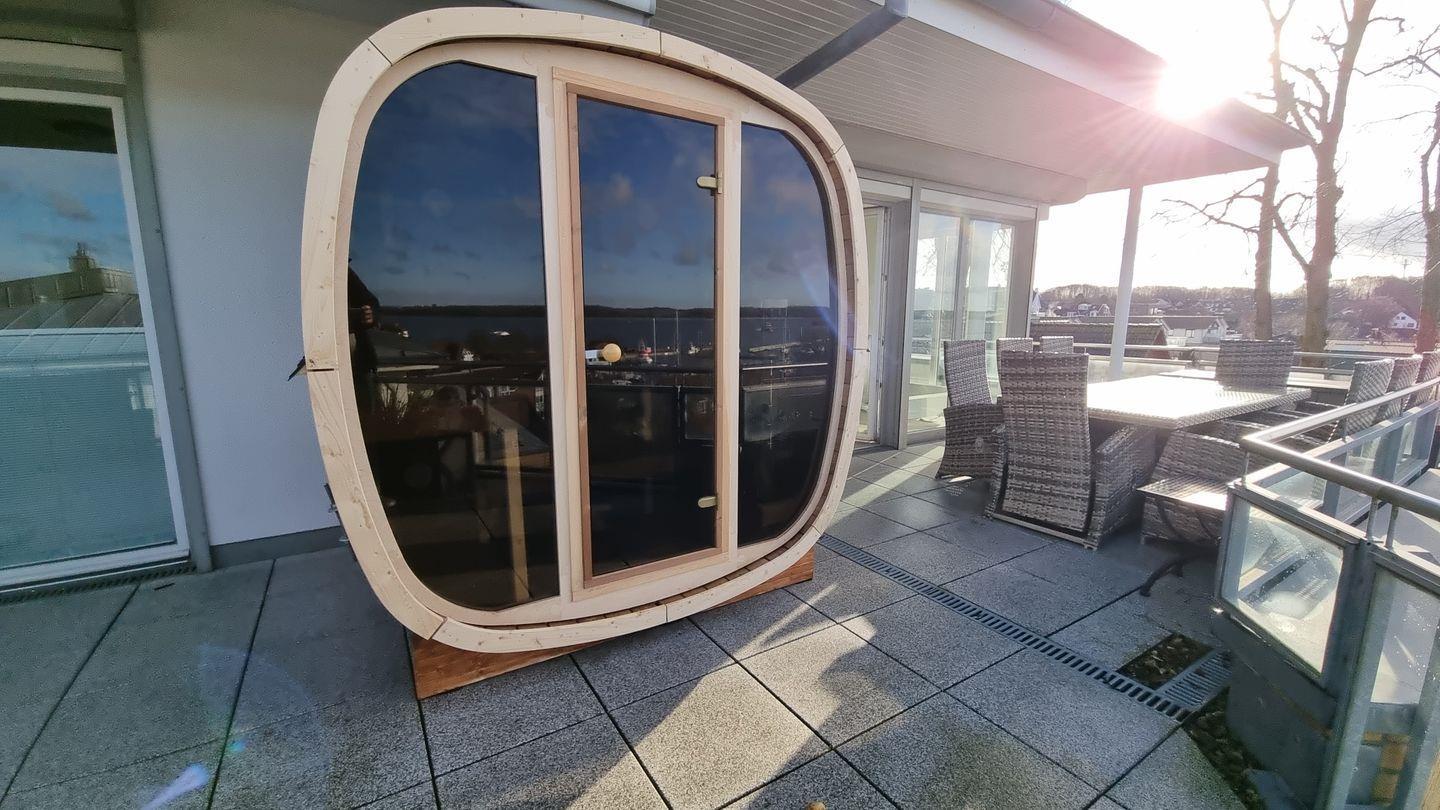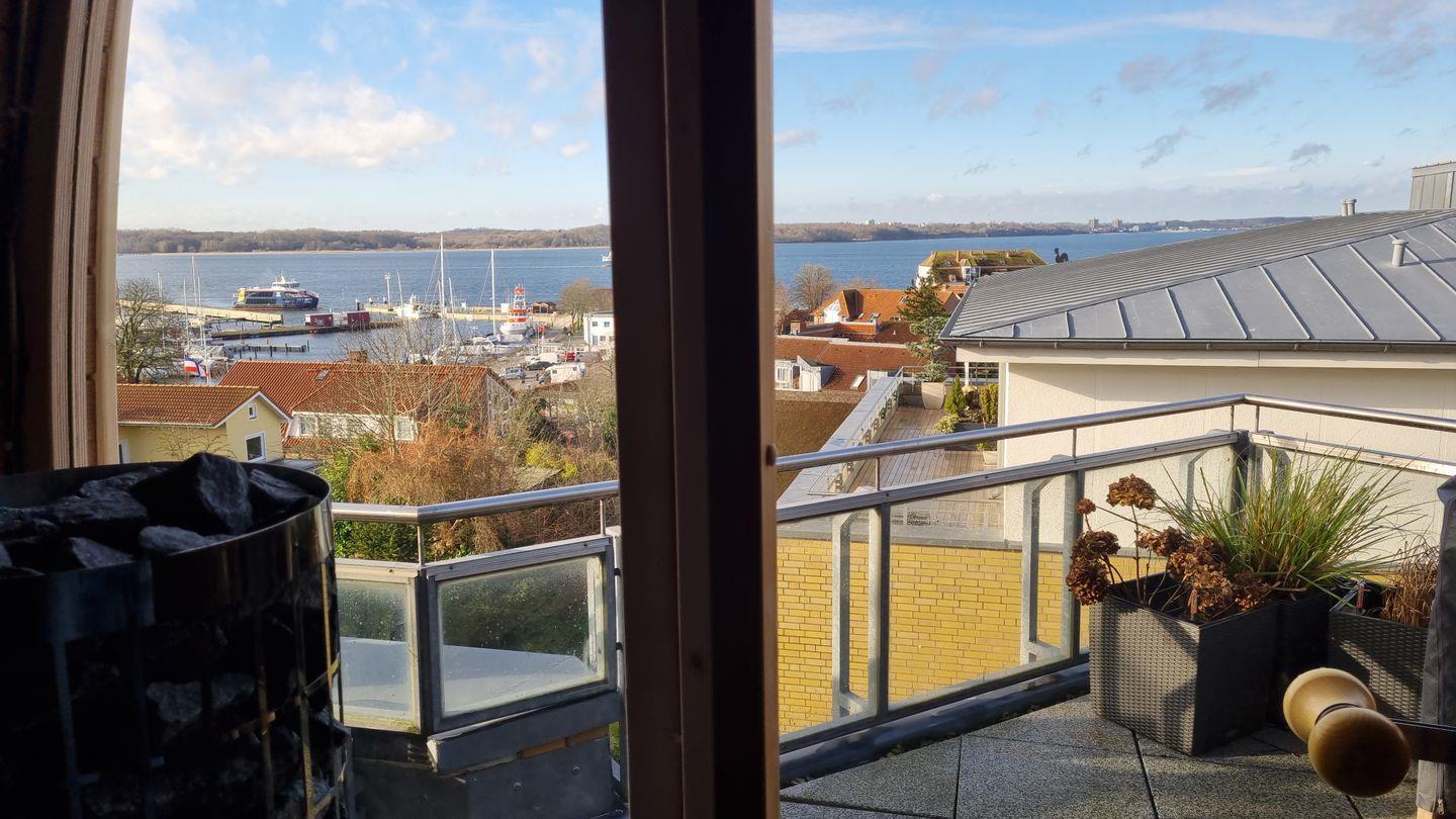 Die Dachterrasse ist das absolute Highlight. Ob du im Strandkorb die Sonne genießt, im Hängesessel schaukelst oder den Ausblick auf die vorbeiziehenden Schiffe bei einem Grillabend bewunderst – diese Terrasse wird dein Lieblingsplatz sein. Von Sonnenaufgang bis Sonnenuntergang begleitet dich der weite Blick über das Meer und die Häfen. Ein ganz besonderes Erlebnis bietet dir unsere Sauna mit einmaliger Aussicht auf die Kieler-Förde. Mehr Ostsee geht nicht!