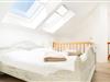 Auf der offenen Galerie befindet sich das Schlafzimmer mit einem komfortablen Doppelbett. Die Gestaltung der Maisonette sorgt dafür, dass dieser Bereich angenehm großzügig wirkt und gleichzeitig Privatsphäre bietet – ein wunderbarer Rückzugsort nach einem langen Tag am Strand.