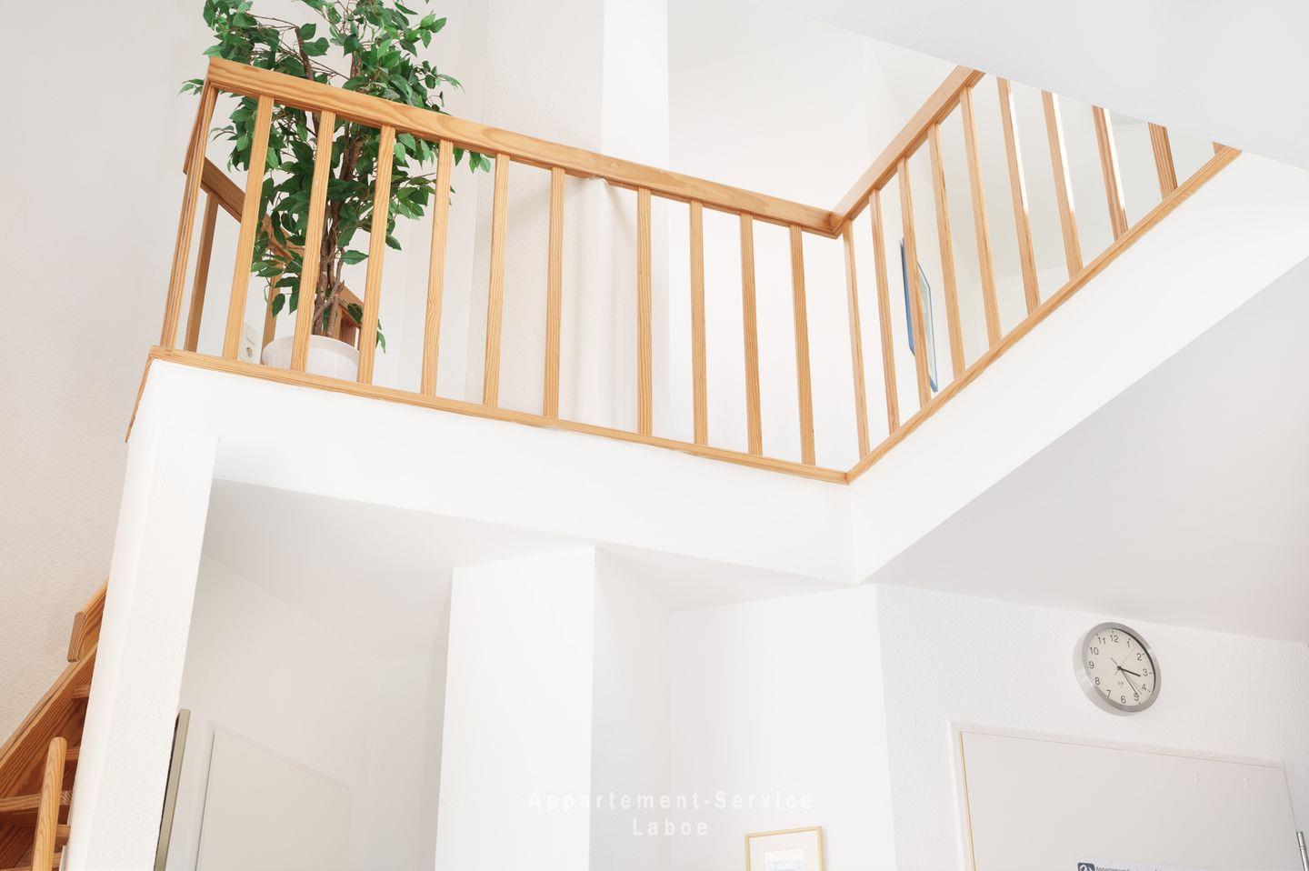 FeWo W21 im Haus Nautic: 50?m² große Maisonette-Wohnung im 2. OG für bis zu 4 Personen. Wohnbereich mit Sitzgruppe und Doppelbettcouch, offene Galerie mit Doppelbett. Voll ausgestattete Küche mit Essplatz, modernes Bad mit Dusche/WC, Flur mit Garderobe. Möblierte Loggia. WLAN und TV vorhanden. Außenstellplatz direkt am Haus. Nichtraucher, Haustiere willkommen. Ca. 500?m zum Strand.