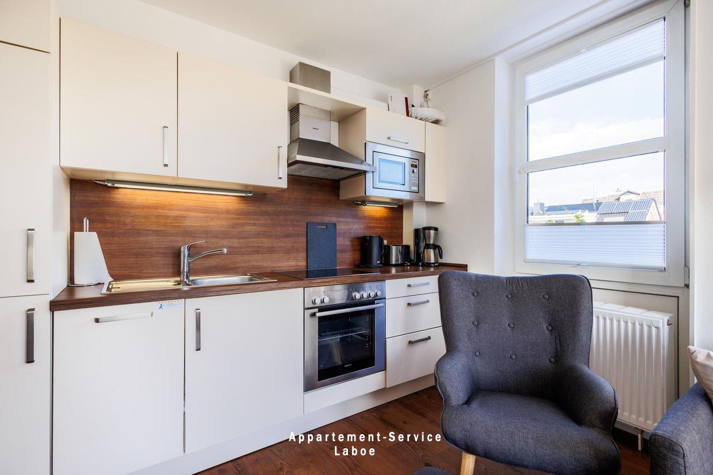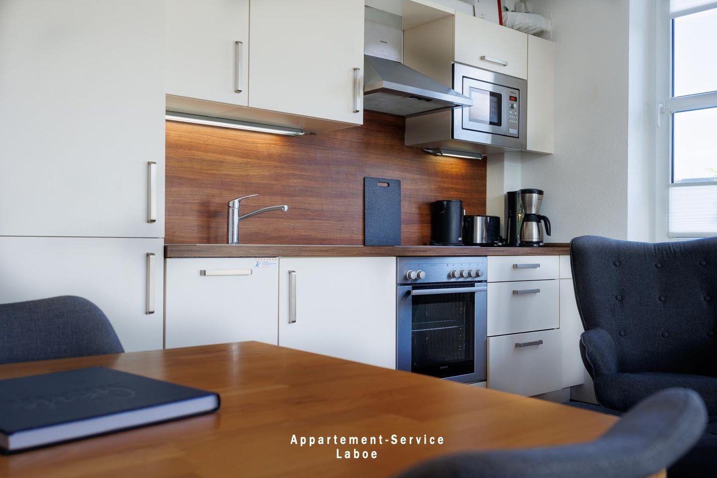 FeWo Hafenresidenz Fördeglück in traumhafter Hafenlage, 1. OG, 42m², 2-Raum-Wohnung, Wohn-Küche mit Sitzgruppe, vollausgestattete Küchenzeile mit Essplatz, Schlafzimmer mit Doppelbett, Badezimmer mit Dusche und WC, möblierter Balkon, PKW-Tiefgaragenstellplatz Duplexparkanlage (max. L 5,00 m; B 2,00 m; H 1,50 m)