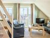 FeWo Bellevue W10: 2-Zimmer-Maisonettewohnung auf ca. 60?m² im 2. OG für bis zu 4 Personen. Wohn-/Schlafbereich mit ausklappbarem Schrankbett, TV, WLAN und Zugang zum Balkon. Offene Küchenzeile mit Essplatz, Ceranfeld, Backofen, Kühlschrank mit Gefrierfach, Kaffeemaschine. Zwei Badezimmer. Oberes Schlafzimmer mit Doppelbett und zweitem Balkon. Beide Balkone zur ruhigen Seitenstraße. Außenstellplatz inklusive. Waschmaschine und Trockner im Haus. Strandkorb am Strand reserviert. Strand, Promenade und Zentrum in direkter Nähe. Keine Haustiere.