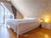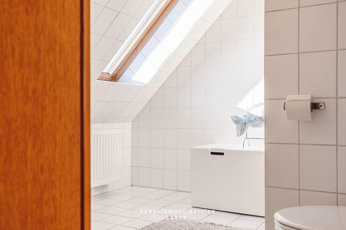 Über eine Treppe gelangst du in die obere Etage. Dort befindet sich das geräumige Schlafzimmer mit Doppelbett und Zugang zum zweiten Balkon. Direkt daneben liegt ein weiteres Badezimmer.