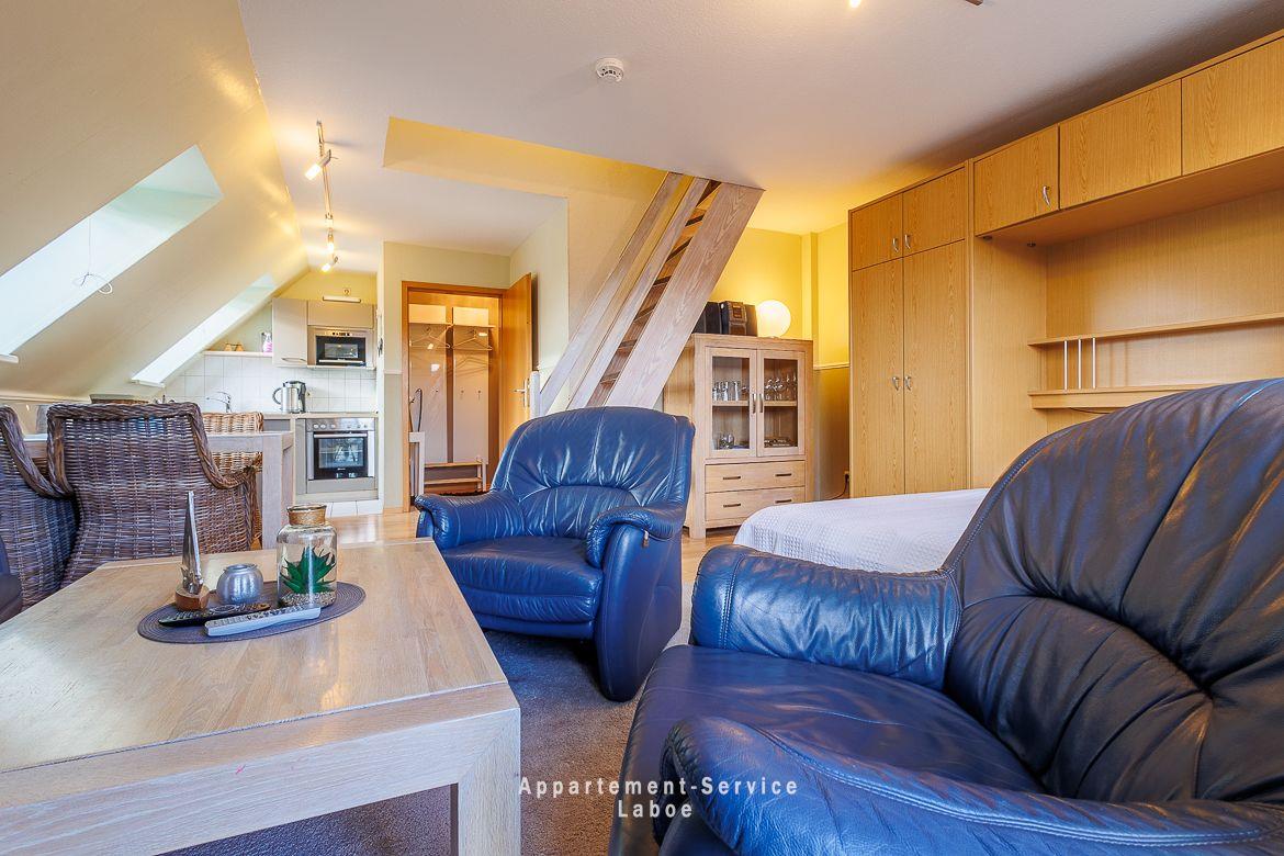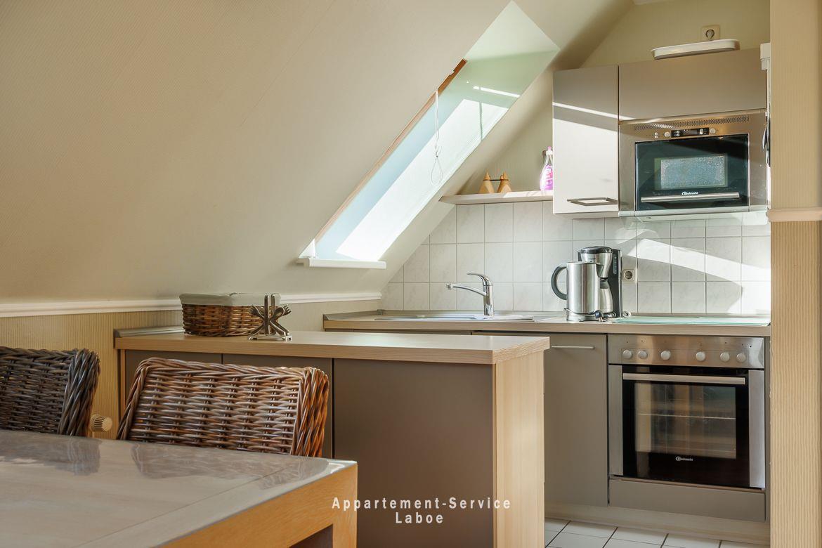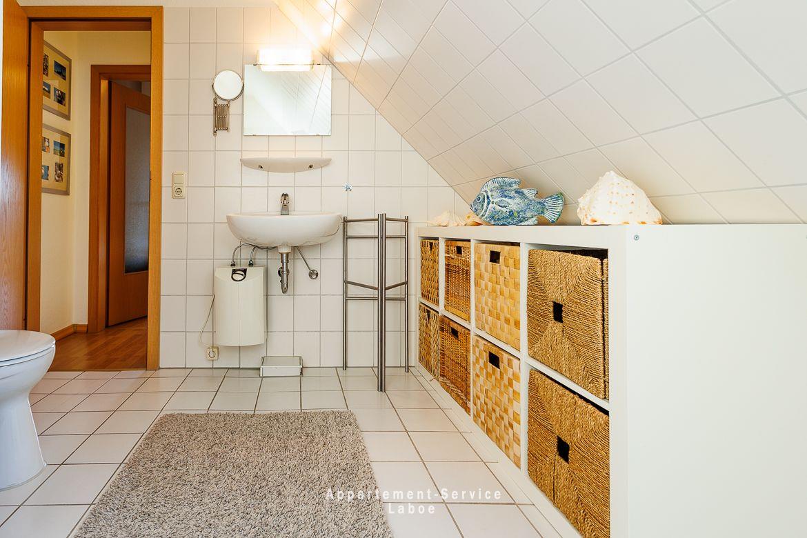 Beide Balkone zeigen zur ruhigen Seitenstraße und bieten dir geschützte Plätze an der frischen Luft. Ob zum Frühstück in der Sonne oder für ein stilles Glas Wein am Abend. Hier findest du dein eigenes kleines Stück Laboe. Einen direkten Meerblick gibt es zwar nicht, dafür bist du in weniger als einer Minute mit den Füßen im Sand.