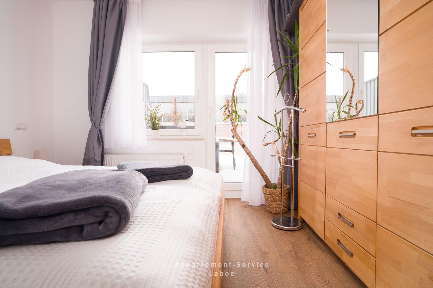 Mit 80 Quadratmetern Wohnfläche ist diese Wohnung ideal für Familien, kleine Gruppen oder Paare, die sich ein großzügiges Zuhause auf Zeit am Meer wünschen. Zwei gemütliche Schlafzimmer sorgen für erholsame Nächte – und im Wohnzimmer steht zusätzlich ein komfortables Doppelschrankbett bereit, das bei Bedarf ganz unkompliziert für zwei weitere Schlafplätze sorgt.