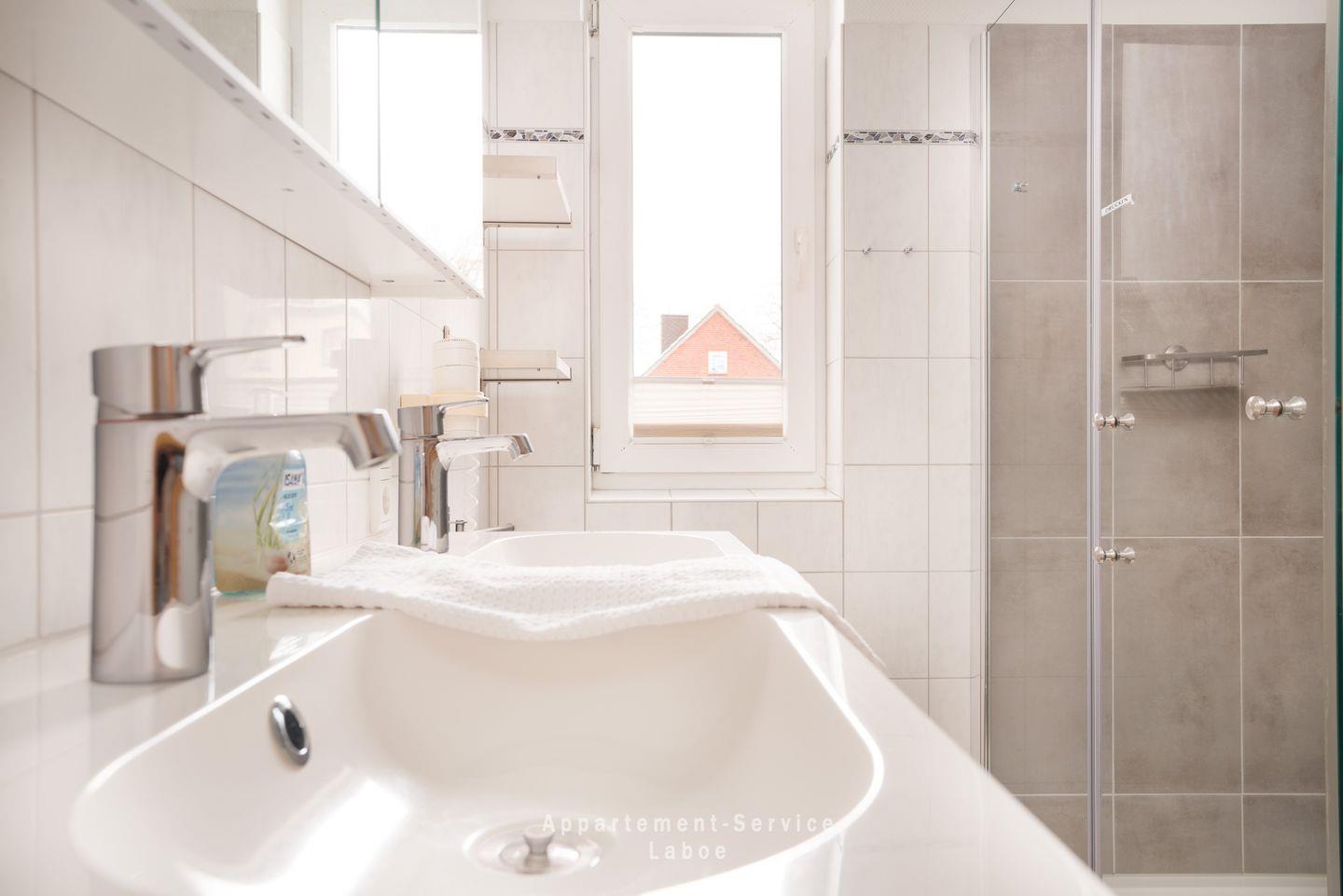 FeWo Seewind W04: 3-Zimmer-Wohnung, 80 m², im 1. Obergeschoss, für bis zu 6 Personen. Zwei Schlafzimmer mit Doppelbetten, zusätzliches Doppelschrankbett im Wohnbereich. Offener Wohnbereich mit Sofa, Sessel, Essplatz, drei TVs, HiFi-Anlage und WLAN. Offene Küche mit Cerankochfeld, Backofen, Mikrowelle, Spülmaschine und Kaffeemaschine. Badezimmer mit bodengleicher Dusche und WC. Balkon mit Ostseeblick, Sonnenliegen. Gemeinschaftsgarten mit Fass-Sauna, Hot-Tub und Grillplatz. Pkw-Stellplatz am Haus, Ladesäule für E-Autos vorhanden. Waschraum mit Waschmaschine und Trockner (Münzeinwurf). Haustiere erlaubt. Ca. 20 m zum Strand, fußläufig zu Promenade, Hafen, Gastronomie, Einkaufsmöglichkeiten und Spielplätzen.