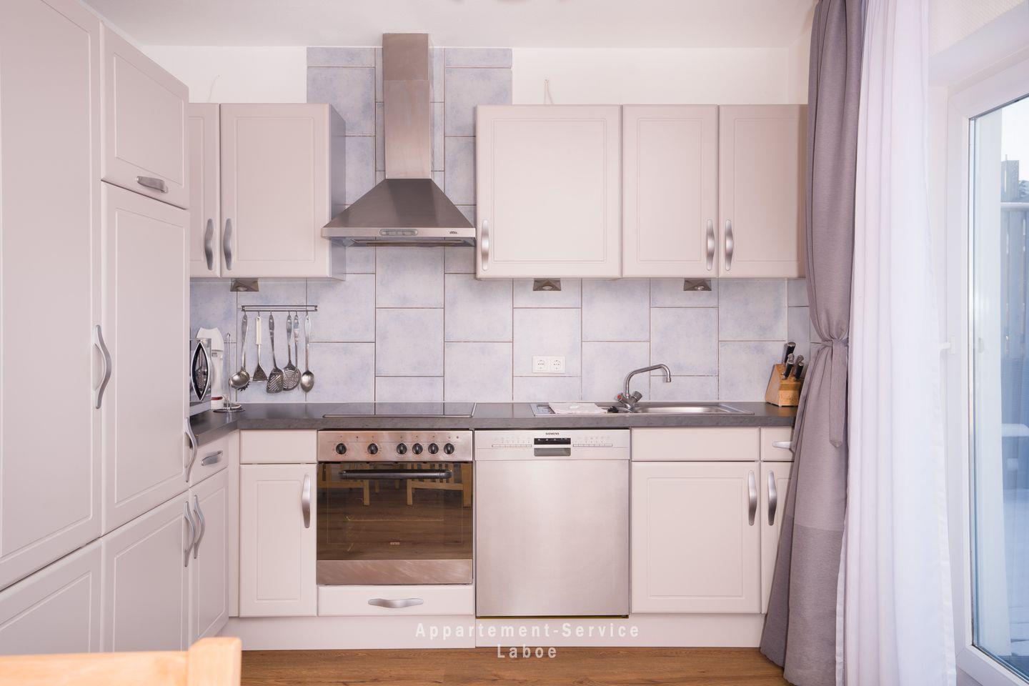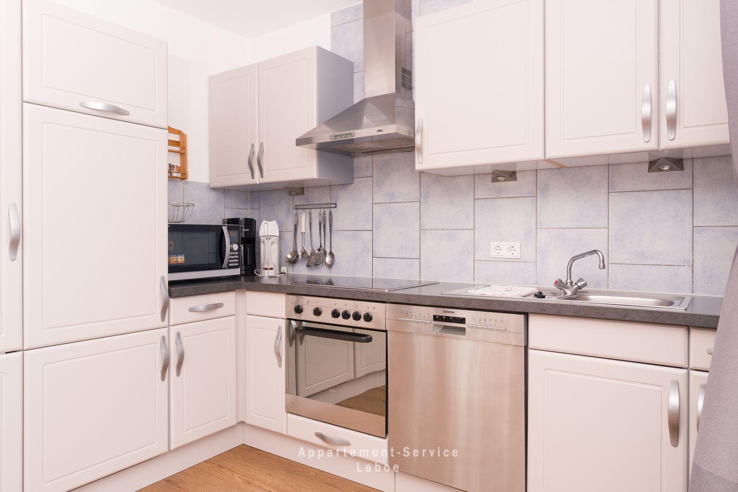 Das moderne Badezimmer ist mit einer bodengleichen Dusche ausgestattet – bequem, barrierearm und hochwertig eingerichtet. Für entspannte Kochabende bietet dir die offene Küche alles, was du brauchst: Cerankochfeld, Backofen, Mikrowelle, Spülmaschine und Kaffeemaschine. Am großen Esstisch ist Platz für gemeinsame Mahlzeiten, Kartenspiele oder Urlaubspläne. Die gemütliche Sofaecke mit Sessel lädt zum Ausruhen ein – drei Fernseher und eine HiFi-Anlage sorgen bei Bedarf für Unterhaltung.