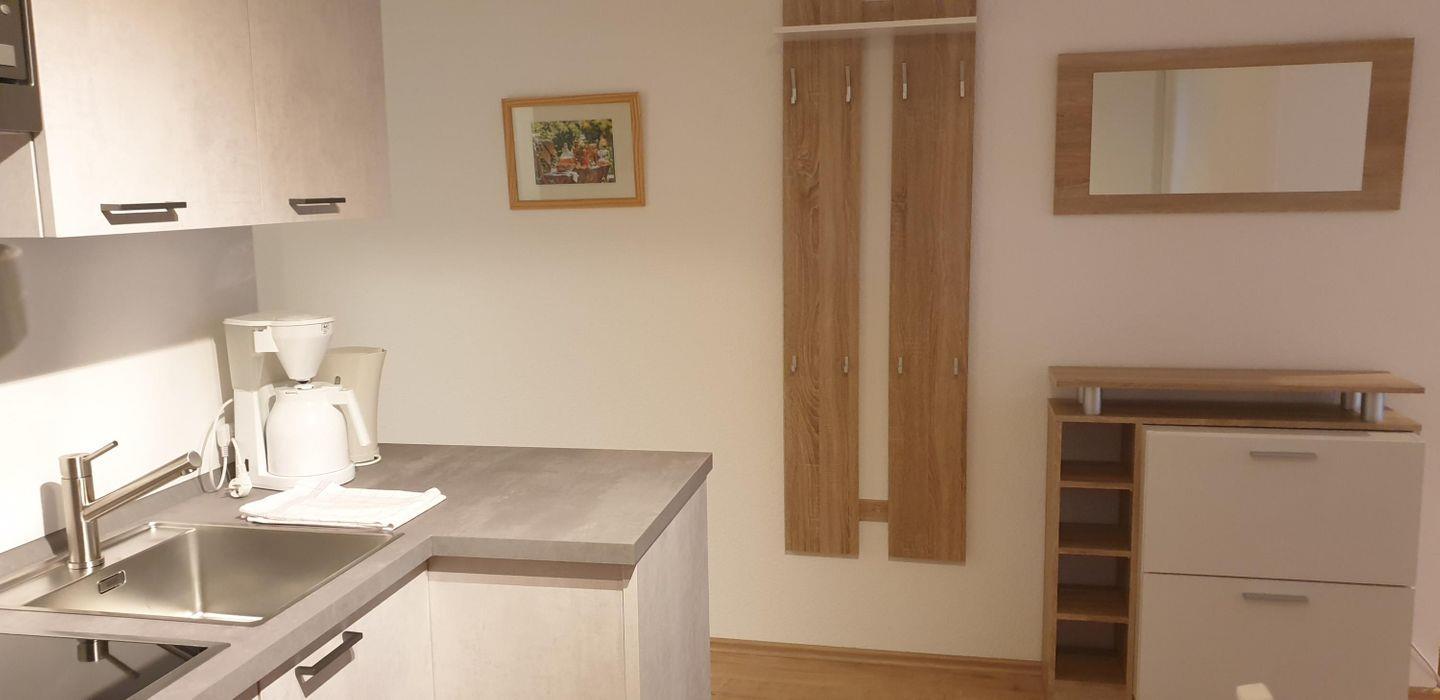 FeWo Kapitänshaus W07: 2-Zimmer-Wohnung, 44 m², im 1. Obergeschoss, für bis zu 4 Personen. Wohnbereich mit Schlafcouch, TV, HiFi-Anlage, WLAN und Essplatz. Offene Küche mit Cerankochfeld, Backofen, Spülmaschine, Mikrowelle. Schlafzimmer mit Doppelbett. Badezimmer mit Dusche, WC, Haartrockner und Kosmetikspiegel. Balkon. WLAN. Tiefgaragen-Stellplatz. Fahrradabstellplatz und Waschraum mit Waschmaschine und Trockner (Münzeinwurf) in der Tiefgarage. Haustiere nach Absprache erlaubt. Zentrale Lage in Ortszentrum von Laboe, ca. 100 Meter zum Strand und Hafen.