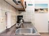Die offene Küche ist funktional eingerichtet und bietet alles, was du für eine unkomplizierte Selbstversorgung brauchst. Morgens kannst du deinen Kaffee mit einem kleinen Blick zur Förde genießen, während draußen das Leben im Hafen langsam erwacht.