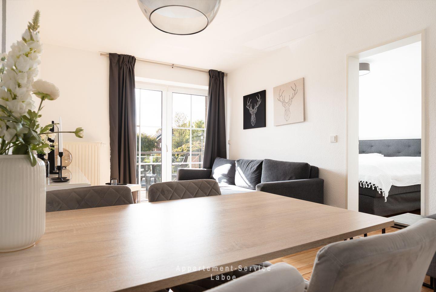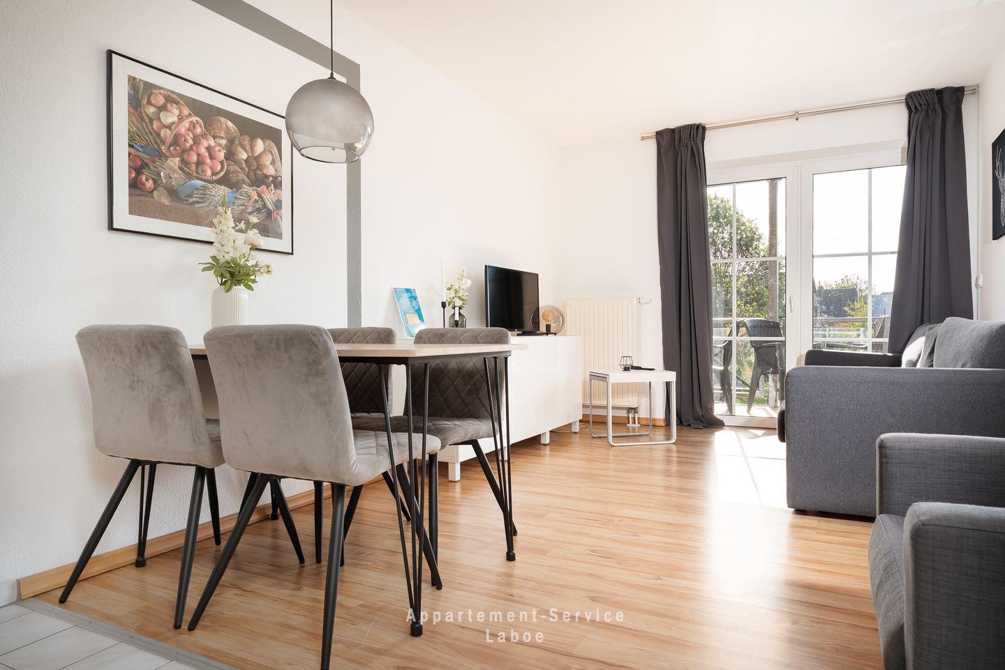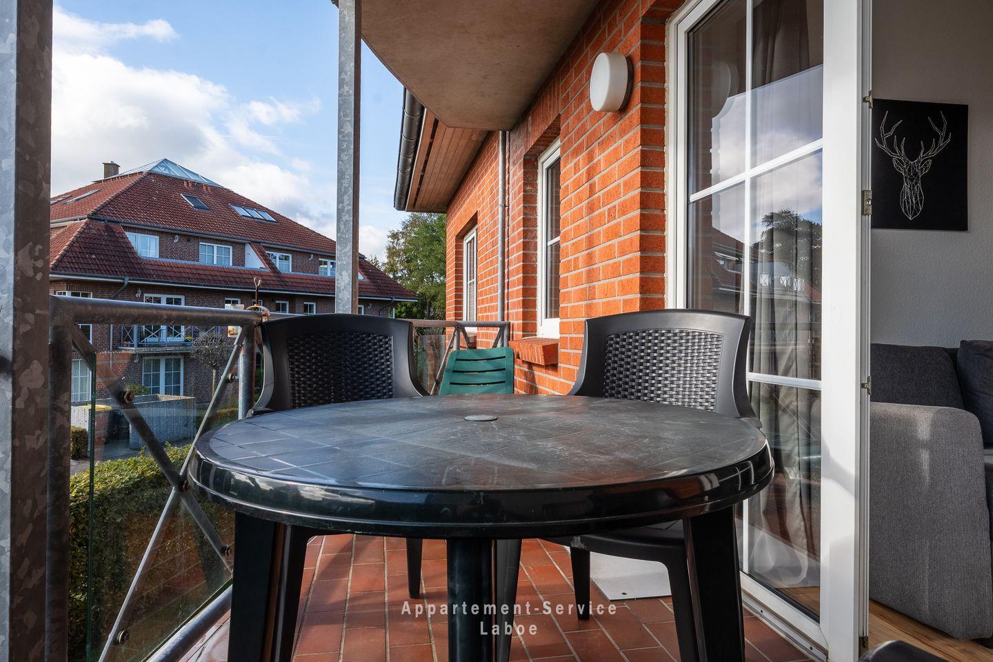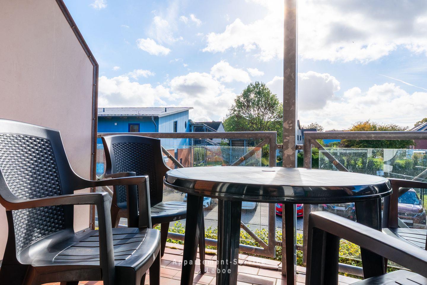 Ein besonderes Highlight ist der möblierte Balkon. Hier kannst du die frische Ostseeluft genießen, den Tag bei einem Kaffee oder einem Glas Wein starten oder ausklingen lassen und einfach mal abschalten.