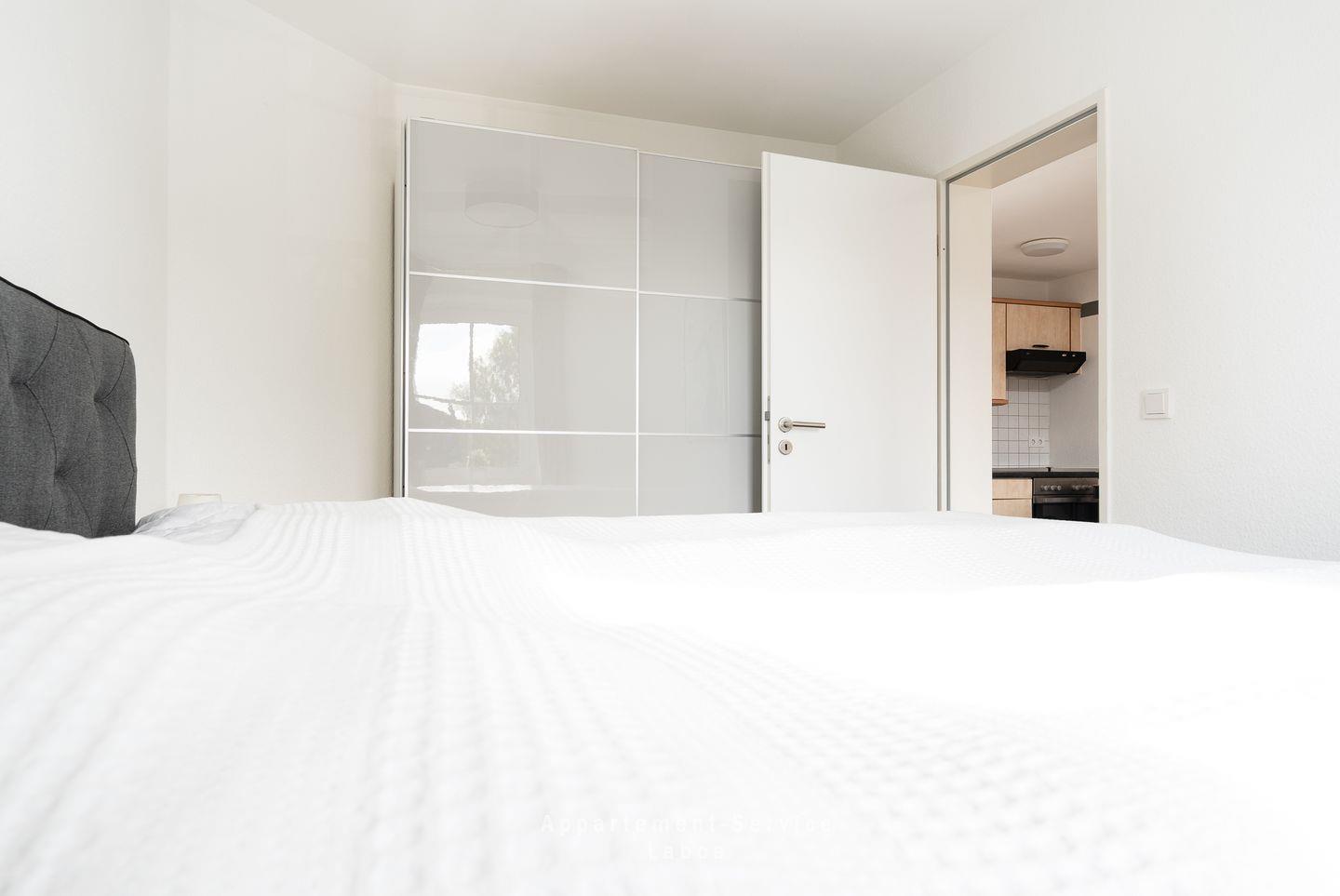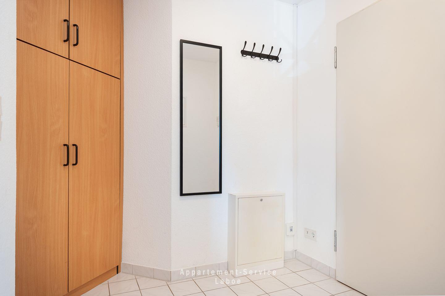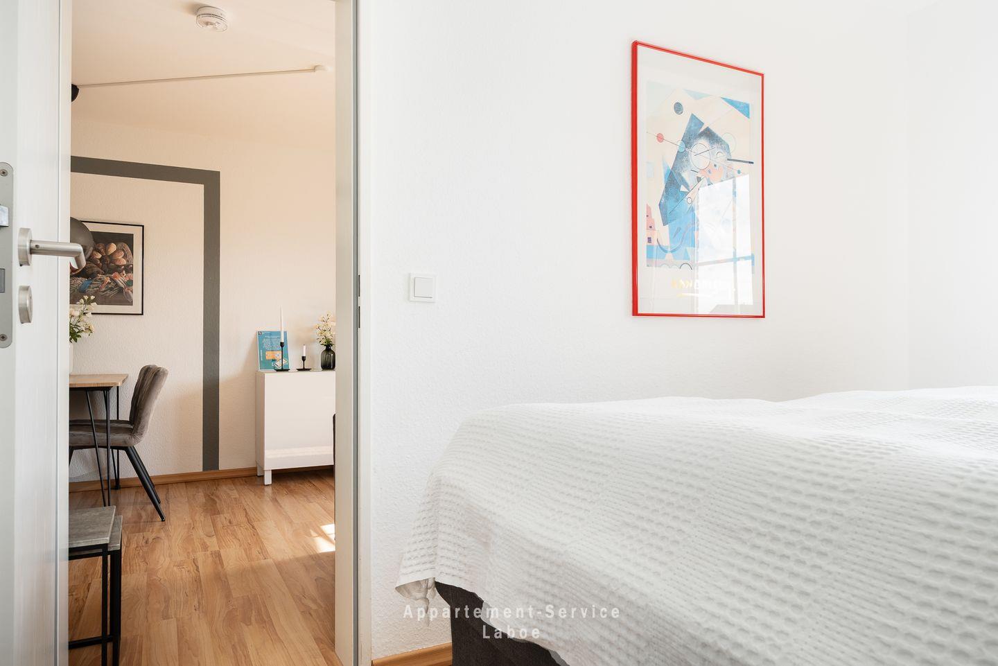 Im separaten Schlafzimmer mit einem komfortablen Doppelbett findest du erholsamen Schlaf nach einem erlebnisreichen Tag. Der kleine Flur mit Garderobe hält alles ordentlich und das moderne Badezimmer mit Dusche und WC rundet die Wohnung perfekt ab.