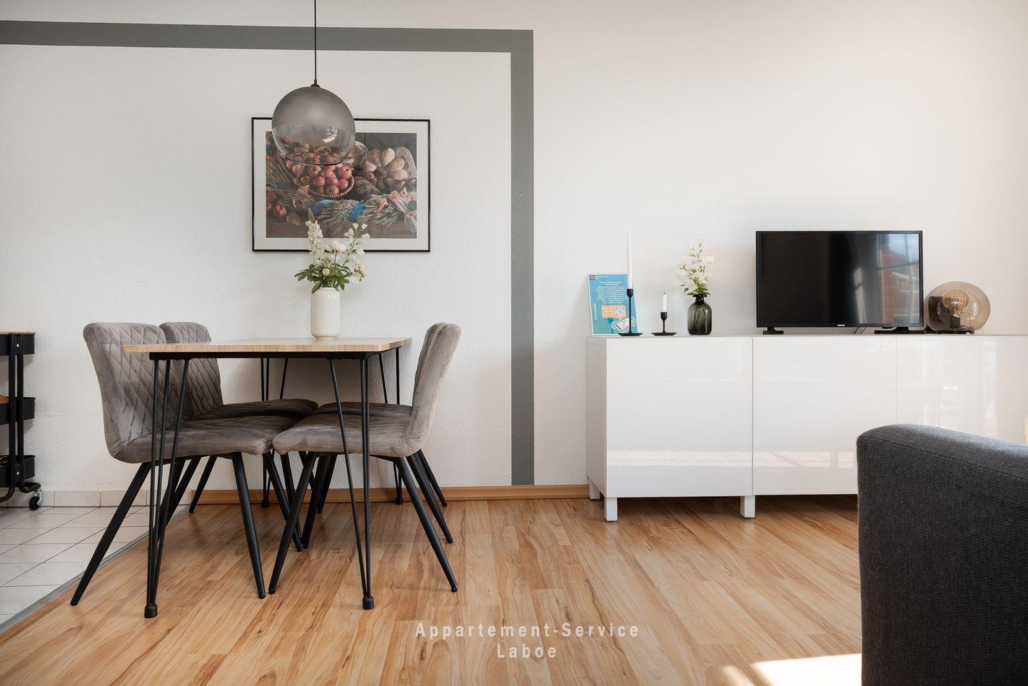 Die offene Küche mit Essplatz ist komplett ausgestattet und lässt keine Wünsche offen. Ob ein schnelles Frühstück oder ein ausgiebiges Abendessen – hier macht Kochen richtig Spaß. Der Essplatz ist perfekt für gesellige Mahlzeiten und bietet viel Platz für schöne Momente zusammen.