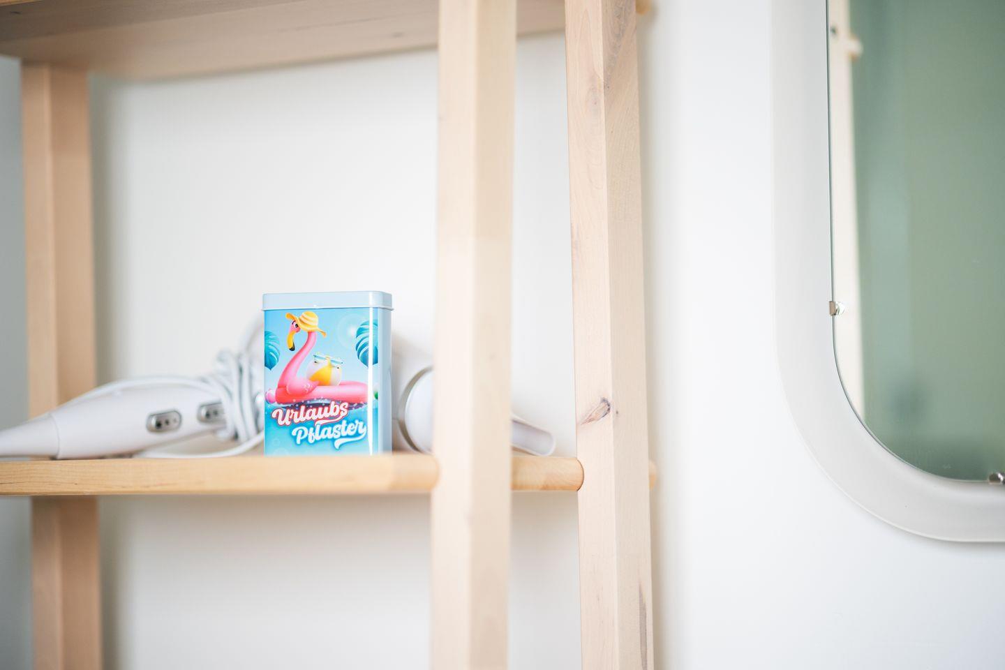 Genieße die frische Luft und das maritime Flair auf der Terrasse mit Sitzgelegenheit für sechs Personen und einem Grill für gemütliche Abende im Freien. Ein besonderes Highlight: Für deinen Aufenthalt steht dir ein eigener Strandkorb am Strand kostenlos zur Verfügung – perfekt, um die Meeresbrise und den Strand in vollen Zügen zu genießen.