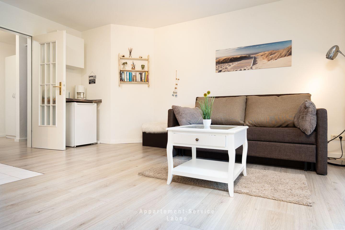 FeWo Nautic W08: Gemütliche 1-Zimmer-Wohnung im Erdgeschoss, nur 450?m vom Strand entfernt, ideal für 1–2 Personen. Wohn-/Schlafraum mit hochwertigem Schlafsofa (160?x?200?cm), modernes Duschbad, voll ausgestattete Küche mit Ceranfeld, Backofen, Kaffeemaschine, Wasserkocher und Toaster. Essbereich, TV, HiFi-Anlage, WLAN. Terrasse mit Gartenmöbeln. Gemeinschaftlicher Waschraum mit Nutzung von Waschmaschine & Trockner, Föhn, Kosmetikspiegel vorhanden. Haustiere erlaubt. Parkplatz inklusive (Duplex-Parkanlage: eingeschränkte Nutzung, maximale Fahrzeuggröße 500?cm Länge, 200?cm Breite und 150?cm Höhe.