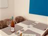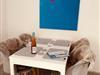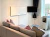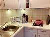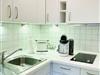 Die offen zum Wohnzimmer gestaltete Küche ist umfangreich und funktional eingerichtet. Sie verfügt über einen Kühlschrank mit Gefrierfach, Spülmaschine, 2-Platten-Herd, Mini-Backofen, Mikrowelle, Toaster, Wasserkocher, Tassimo-Espressomaschine sowie alle notwendigen Küchenutensilien, Geschirr und Besteck. Der angrenzende Essbereich mit Esstisch lädt zu gemeinsamen Mahlzeiten ein und bietet ausreichend Platz.