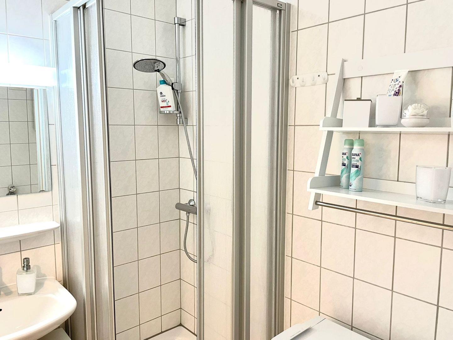 Für Deinen Komfort stehen in der Ferienwohnung zwei Fernseher (Schlafbereich und Wohnbereich), kostenloses WLAN (ideal für Homeoffice oder Streaming), Waschmaschine zur Eigennutzung, Wäscheständer, Staubsauger, Bügelbrett und Bügeleisen zur Verfügung. Moderne Annehmlichkeiten wie Zentralheizung, Kaminofen (Ethanol) für gemütliche Stunden in der kühleren Jahreszeit sowie ein Ganzkörperspiegel, Kosmetikspiegel und Haartrockner im Badezimmer sind ebenfalls vorhanden.