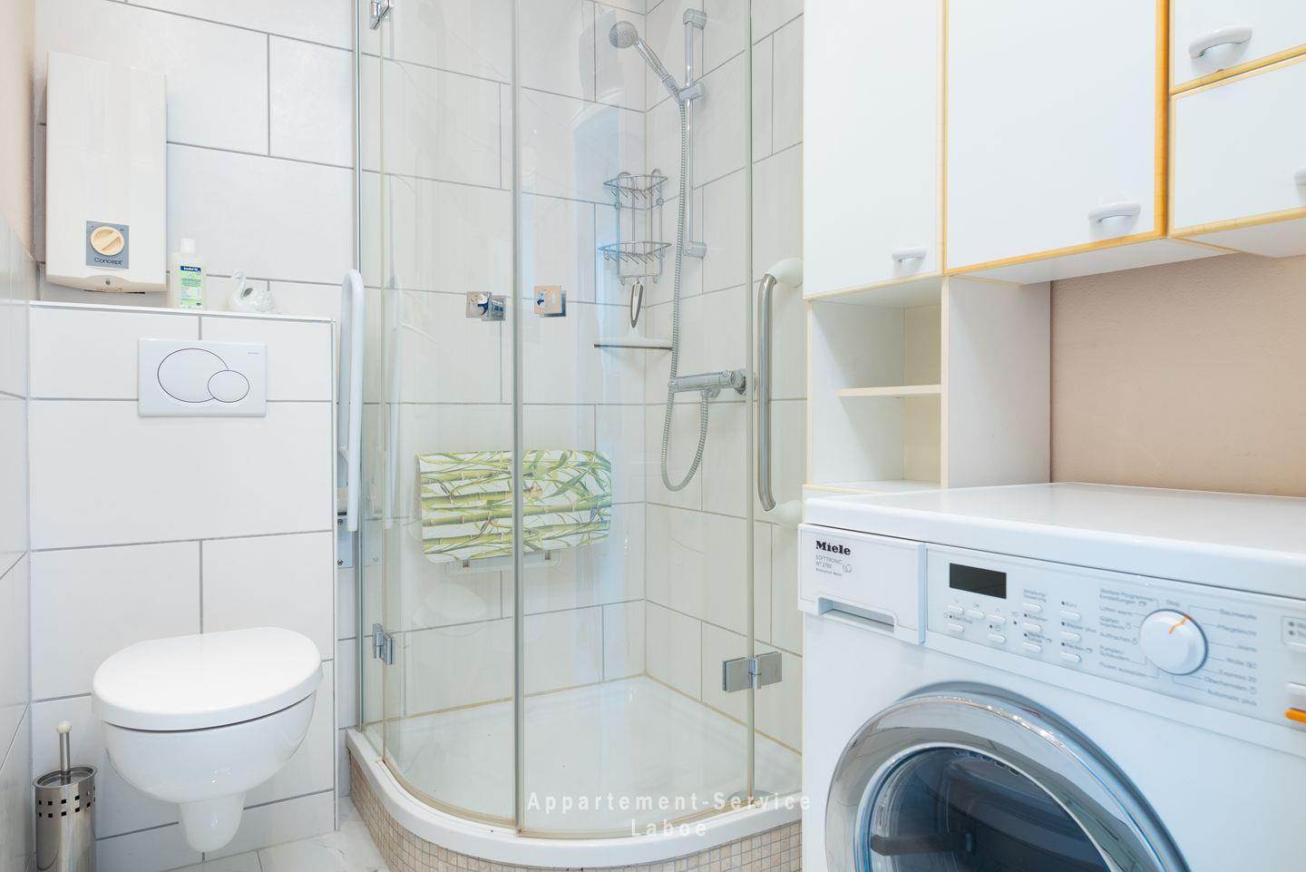 Für zusätzlichen Komfort stehen dir eine Waschmaschine in der Wohnung sowie ein gemeinschaftlicher Trockner zur Verfügung. Dein Auto parkst du auf dem eigenen Stellplatz, sodass du entspannt an- und abreisen kannst.
