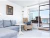 Der Wohnbereich ist offen gestaltet und verbindet Kochen, Essen und Entspannen auf angenehme Weise. Große Fenster lassen viel Licht herein und holen das Meer optisch direkt in den Raum. Auf dem Sofa kannst du zur Ruhe kommen, gemeinsam essen oder einfach den Ausblick genießen. Die Küche ist so ausgestattet, dass du dich auch im Urlaub problemlos selbst versorgen kannst.