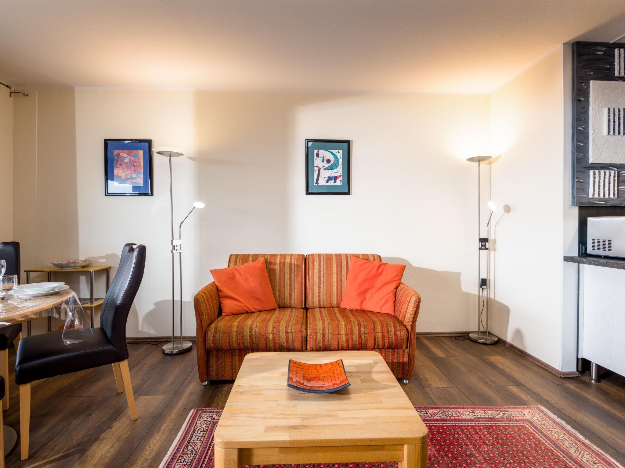 "Morgensonne B1105", 2-room apartment 56 m2 on 11st floor, east facing position. Modern and tasteful furnishings: living/dining room with 1 double sofabed (130 cm, length 190 cm), satellite TV (flat screen). Exit to the balcony. 1 double bedroom. Kitchenette (oven, dishwasher, 4 ceramic glass hob hotplates, toaster, kettle, microwave, freezer, electric coffee machine). Shower/WC. Balcony furniture. Marvellous panoramic view of the countryside. Facilities: iron. Internet (WiFi, free). Please note: non-smokers only. Maximum 1 pet/ dog allowed. Smoke alarm. Bookings accepted for holiday purposes only. SDE42501
