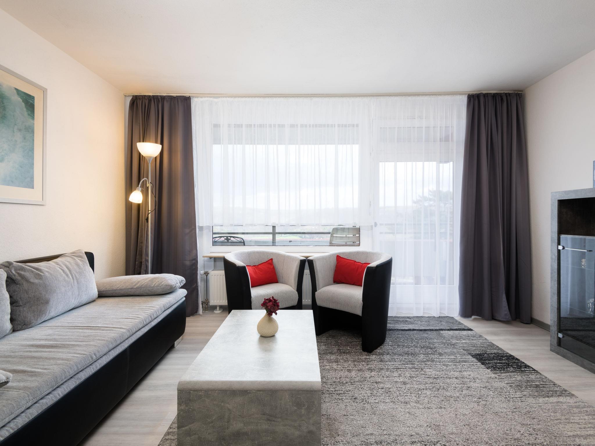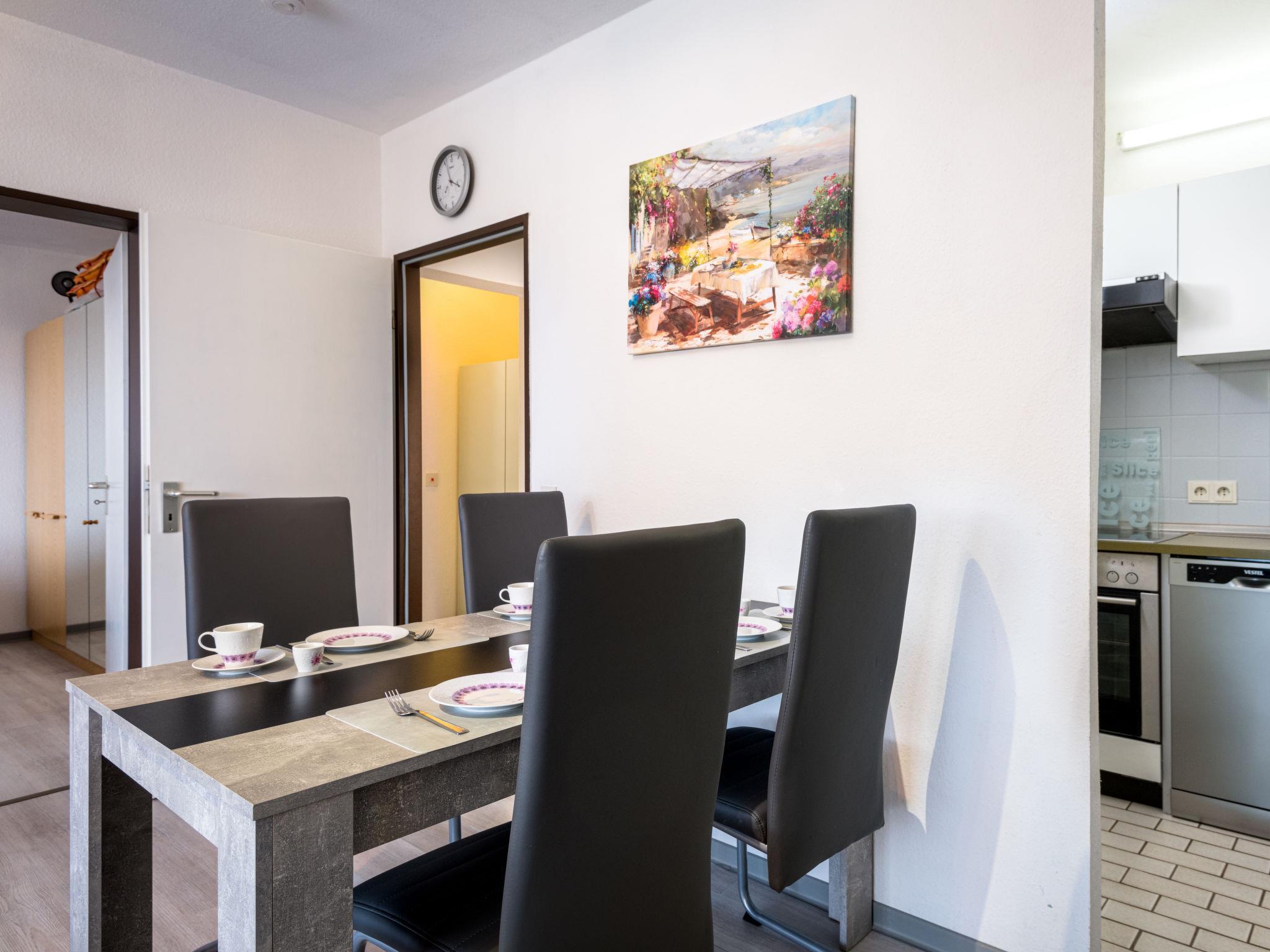 "Waldidylle (A601)", 2-room apartment 56 m2 on 6th floor, east facing position. Modern and tasteful furnishings: living/dining room with 1 double sofabed (160 cm, length 200 cm), satellite TV (flat screen). Exit to the balcony. 1 room with 1 double bed (2 x 90 cm, length 200 cm). Kitchenette (oven, dishwasher, 4 ceramic glass hob hotplates, toaster, kettle, microwave, electric coffee machine). Shower/WC. Balcony furniture. Marvellous panoramic view of the countryside. Facilities: iron. Internet (WiFi, free). Please note: non-smokers only. Maximum 1 pet/ dog allowed. Smoke alarm.