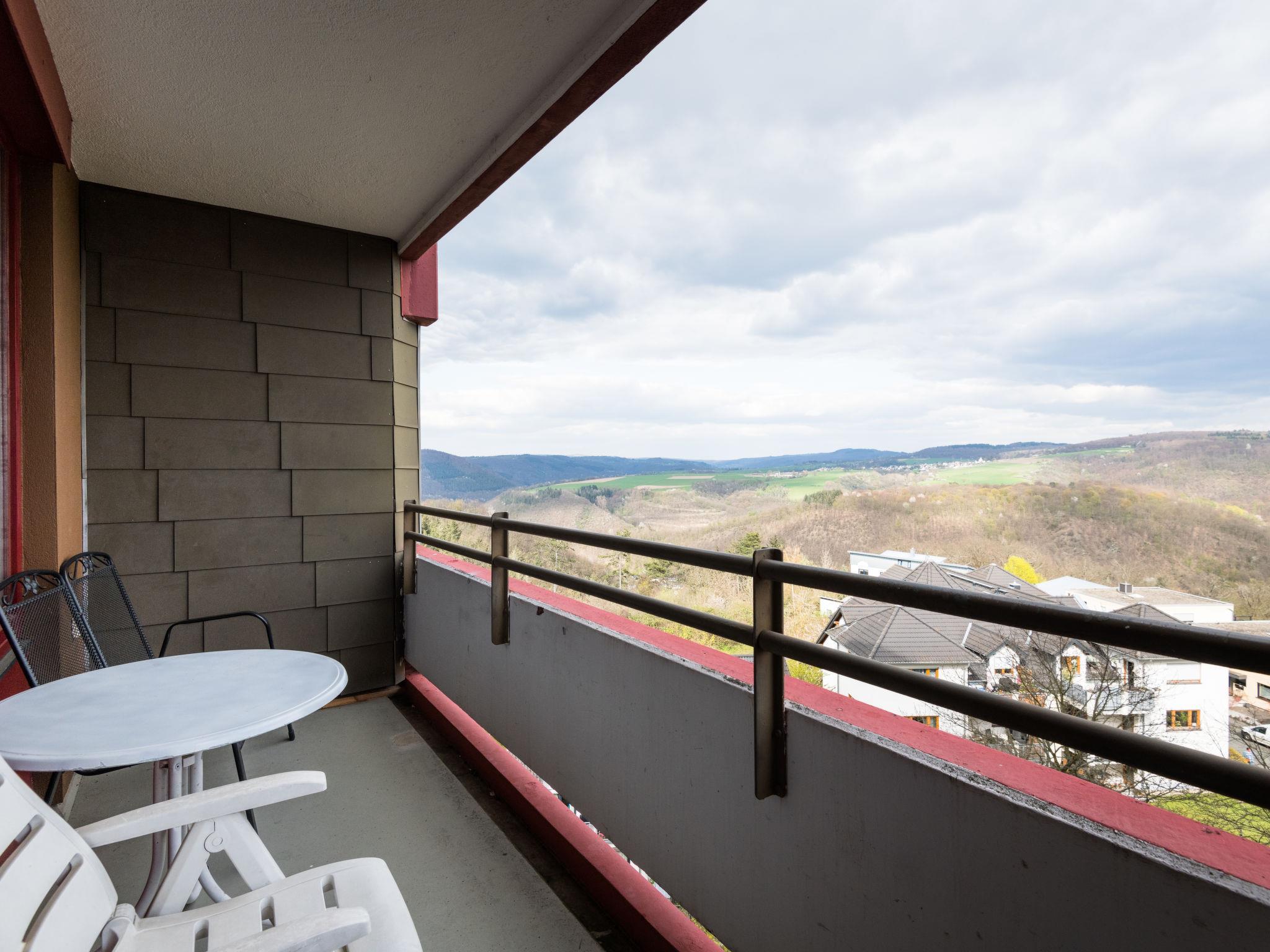 Lahnstein 12 km from Koblenz: Apartment block "Ferienpark Rhein-Lahn". In the district of Lahnstein auf der Höhe 4 km from the centre of Lahnstein, 12 km from the centre of Koblenz, 4 km from the river. For shared use: indoor pool (11 x 6 m, depth 120 cm) with internal staircase. Shower/WC in the pool area. In the complex: reception, WiFi, table tennis, lift, central heating system, washing machine, tumble dryer (for shared use, extra). Parking at the house. E-charging station. Grocery 200 m, supermarket 4.5 km, restaurant 800 m, bakery 4.5 km, bicycle rental 4.5 km, 45 minute walk to the centre, bus stop "Kurklinik" 200 m, railway station "Koblenz (HBF)" 12 km, park "Kurpark" 200 m, outdoor swimming pool 1.5 km, indoor swimming pool 5 km, thermal baths "Emser Therme" 10 km. Golf course (18 hole) 16 km, tennis 500 m, minigolf 6 km, walking paths from the house 100 m, cycle lane 4.5 km, children's playground 100 m. Nearby attractions: Burg Lahneck 3 km, Marksburg 7 km, Deutsches Eck Koblenz / Seilbahn 10 km, Schloss Stolzenfels 13 km. Hiking paths: Lahn-Höhenweg 100 m, Rheinsteig (11) 100 m, Jakobswege Rhein-Lahn. Please note: car recommended. Lahn River 4 km. Boat trips (KD) on the Rhine 4.5 km. Moselle River 10 km. A small kiosk with a small animal enclosure is 300 m away. The Rhein-Lahn holiday park is located 200 m above the town of Lahnstein, in the heart of the 530 km² Nassau Nature Park. It consists of two interconnected apartment buildings and its own Interhome service office. Smoking is permitted on the balconies of the apartments. An 11 kW electric charging station is located in the parking lot. Usage and billing are handled through the Interhome service office.