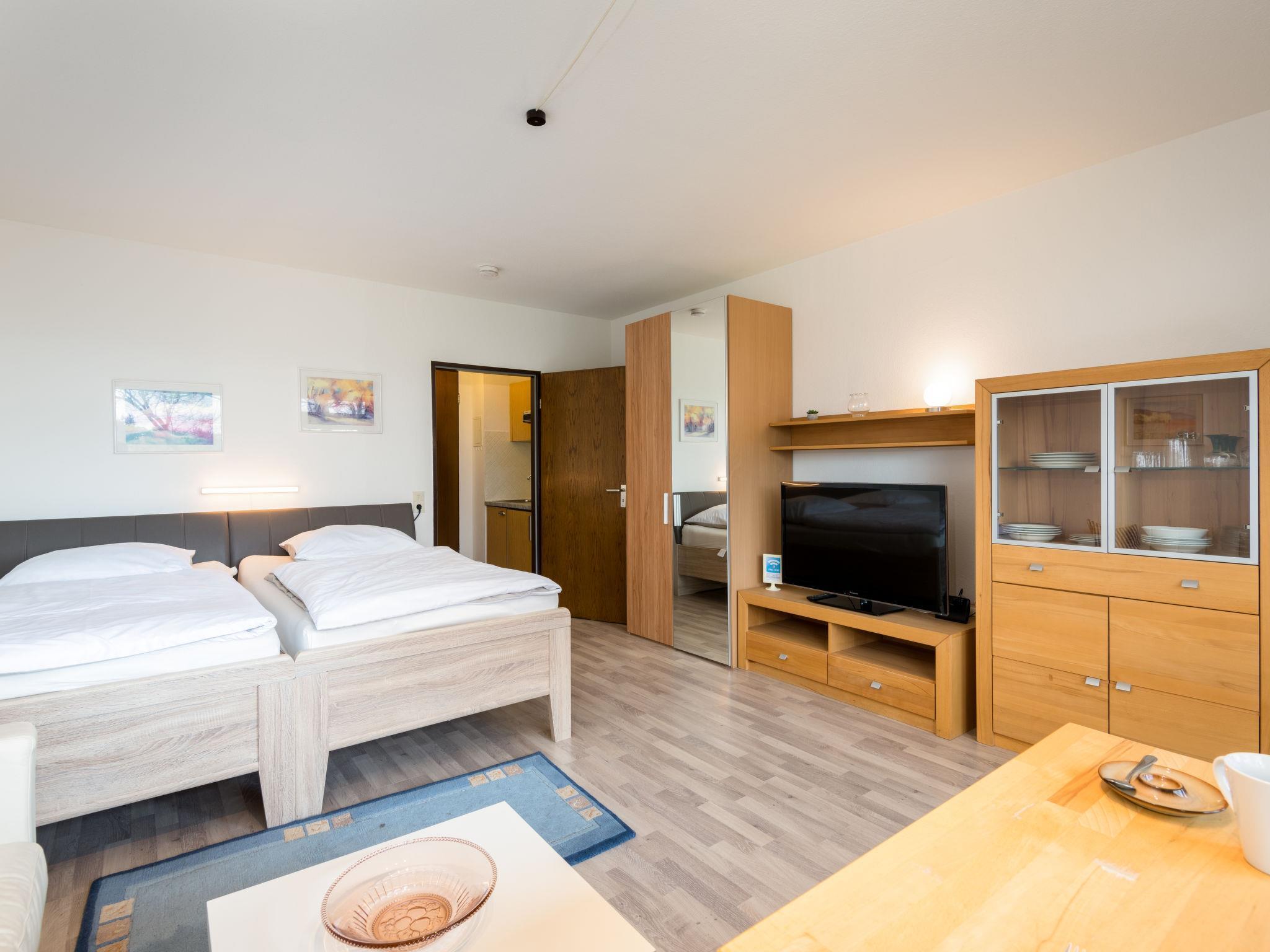 "Flora und Fauna (B306/B307)", 2-room apartment 66 m2 on 3rd floor, west facing position. Living/sleeping room with 2 beds (90 cm, length 200 cm), satellite TV (flat screen). Exit to the balcony. Living/sleeping room with 2 beds (90 cm, length 200 cm), satellite TV (flat screen). Exit to the balcony. Kitchenette (2 hot plates, toaster, kettle, electric coffee machine). 2 Baths/showers/WC. Balcony furniture. Facilities: Internet (WiFi, free). Please note: non-smokers only. Maximum 2 pets/ dogs allowed. Smoke alarm. PLEASE NOTE: This property is a combination of the two separate apartments DE5420.100.45 and DE5420.100.46 (internal connecting door) with a kitchenette in each apartment.