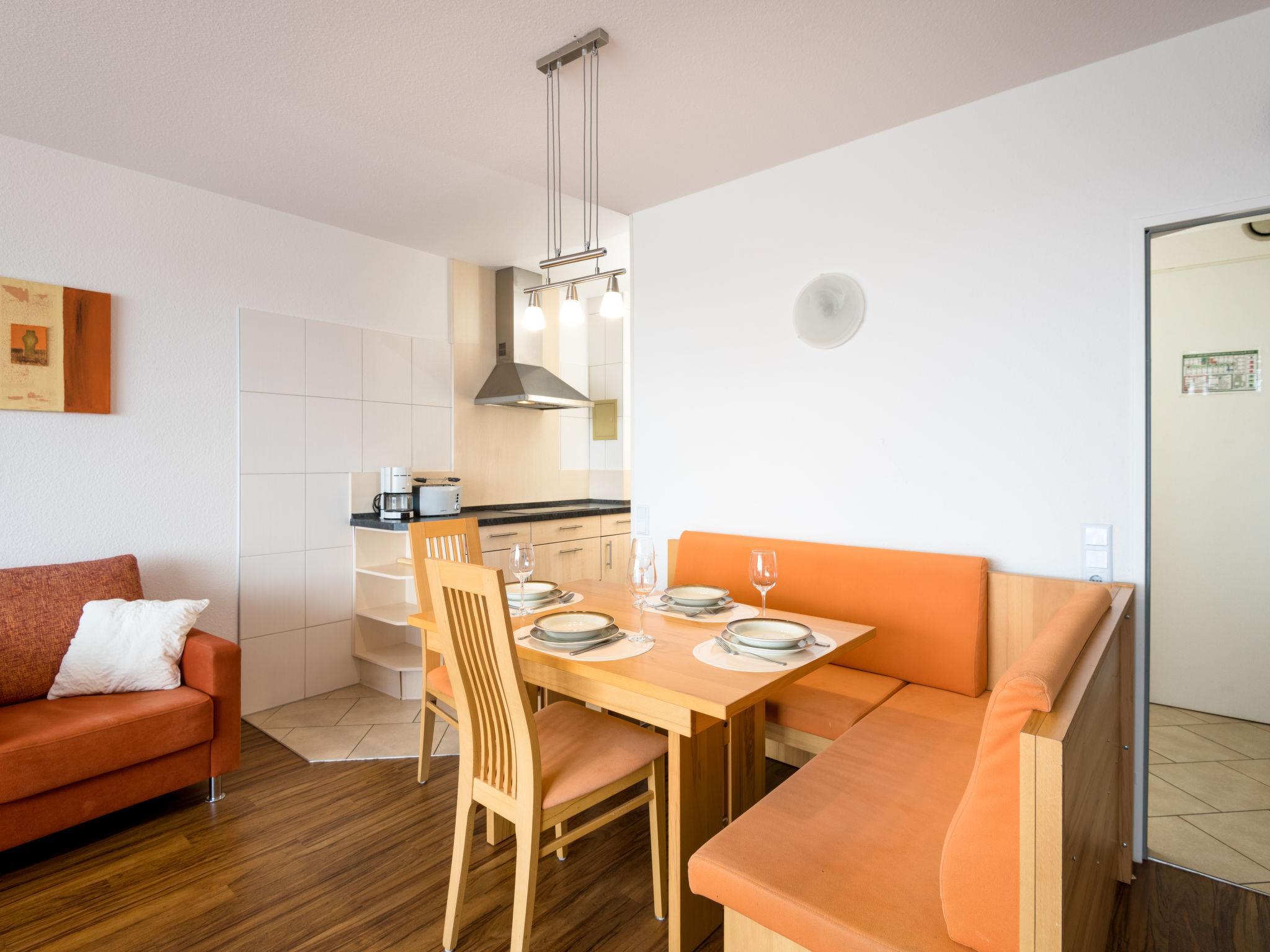 "Lahneck (B1013)", 2-room apartment 56 m2 on 10th floor, west facing position. Object suitable for 2 adults + 2 children. Beautiful and modern furnishings: living/dining room with 1 double sofabed (150 cm, length 200 cm), satellite TV (flat screen). Exit to the balcony. 1 room with 1 double bed (2 x 100 cm, length 200 cm). Kitchenette (dishwasher, 4 ceramic glass hob hotplates, toaster, kettle, microwave, electric coffee machine). Shower/WC. Balcony furniture. Marvellous view of the countryside. Facilities: iron. Internet (WiFi, free). Please note: non-smokers only. Smoke alarm.