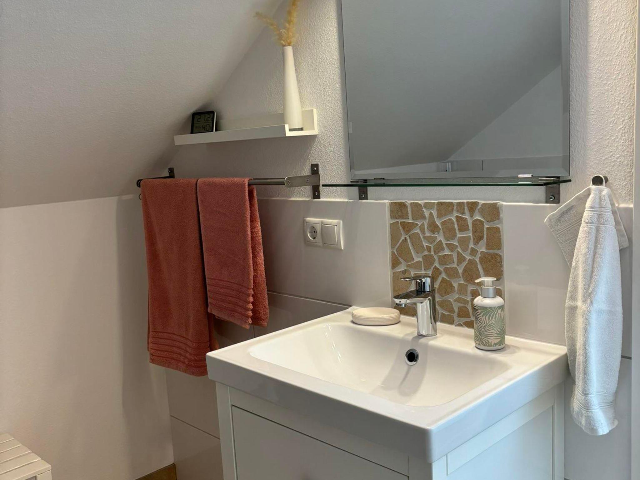 Helles, modernes 25m² Apartment in ruhiger Höhenlage, ideal für 1-2 Personen. Voll ausgestattete Küche mit Kochfeld, Backofen, Mikrowelle, Kühlschrank, Kaffeemaschine. Frühstücksplatz mit Esstische für 2 Personen. Gemütliche Schlafecke mit Bett (1,40 x 2,00 m) sowie Duschbad mit WC. WLAN und SAT-TV inklusive. Parkmöglichkeit in der direkten Nähe