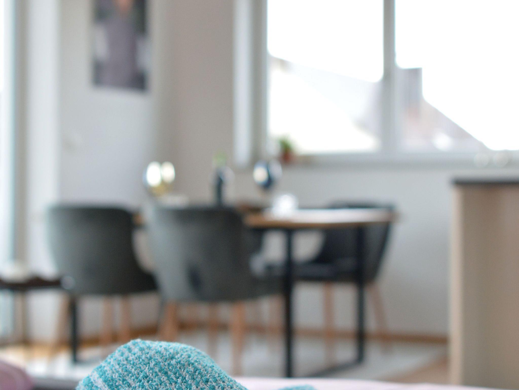 Offene Küche im Wohnzimmer mit einer Insel: Toaster, Kaffeemaschine Nespresso, Wasserkocher, Mikrowelle, Pfannen, Töpfe, Geschirr, Gläser (auch Wein-, Bier-, Sektgläser), Geschirrtuch, Besteck, Flaschenöffner, 4 Plattenherd (Ceran), Dunstabzugshaube, freistehender Kühlschrank mit separatem Gefrierfach, Spülmaschine, Backofen mit Backblech, Fenster im Küchenbereich, im Wohnbereich große Fensterfront, elektrische Jalousien, leere Schubladen in der Küche für Stauraum, Mülltrennung (Plastik, Papier, Restmüll), SMART TV 55 Zoll, Esstisch mit 4 Stühlen, ausziehbare Coach, Kinder unter einem Jahr schlafen im Bett der Eltern umsonst. Gerne kann ein Reisebett mitgebracht werden, es ist genug Platz vorhanden, Bettwäsche wird für das unter 1 jährige Kind nicht gestellt.