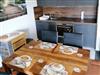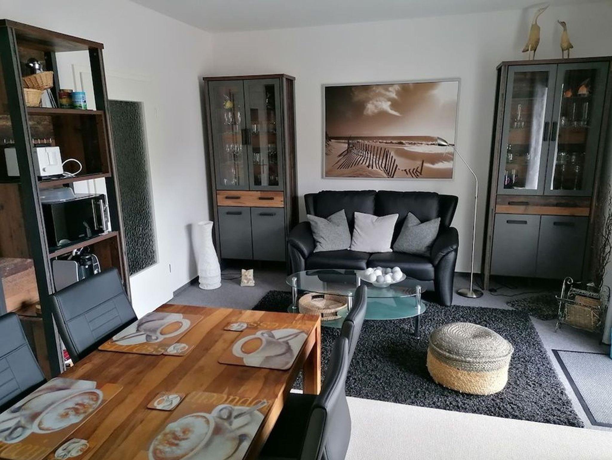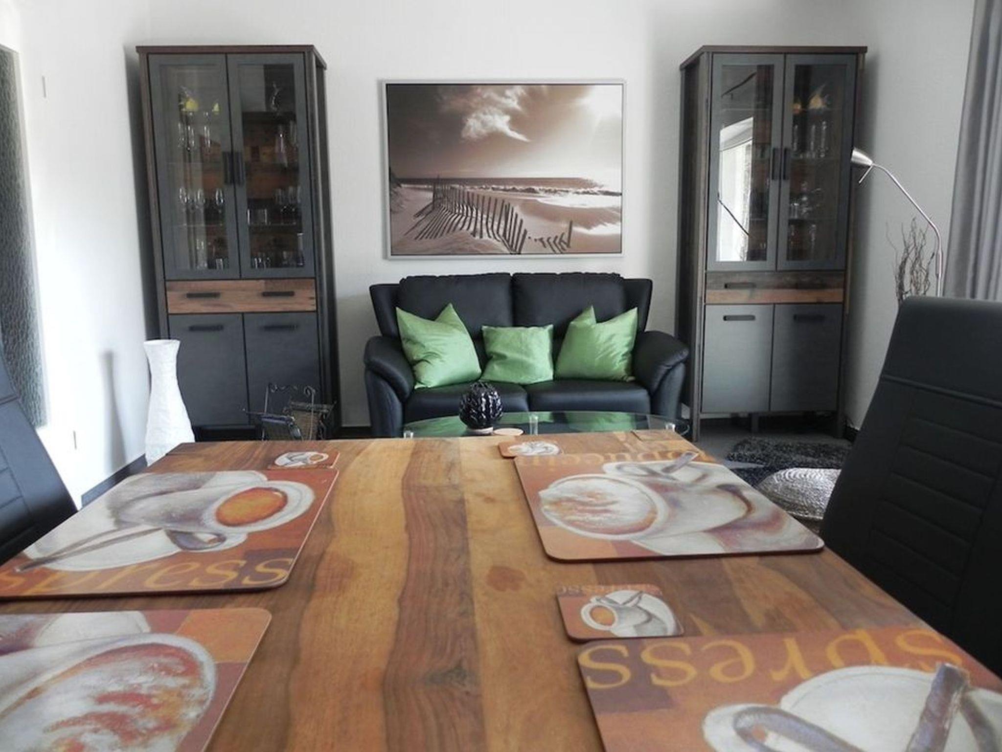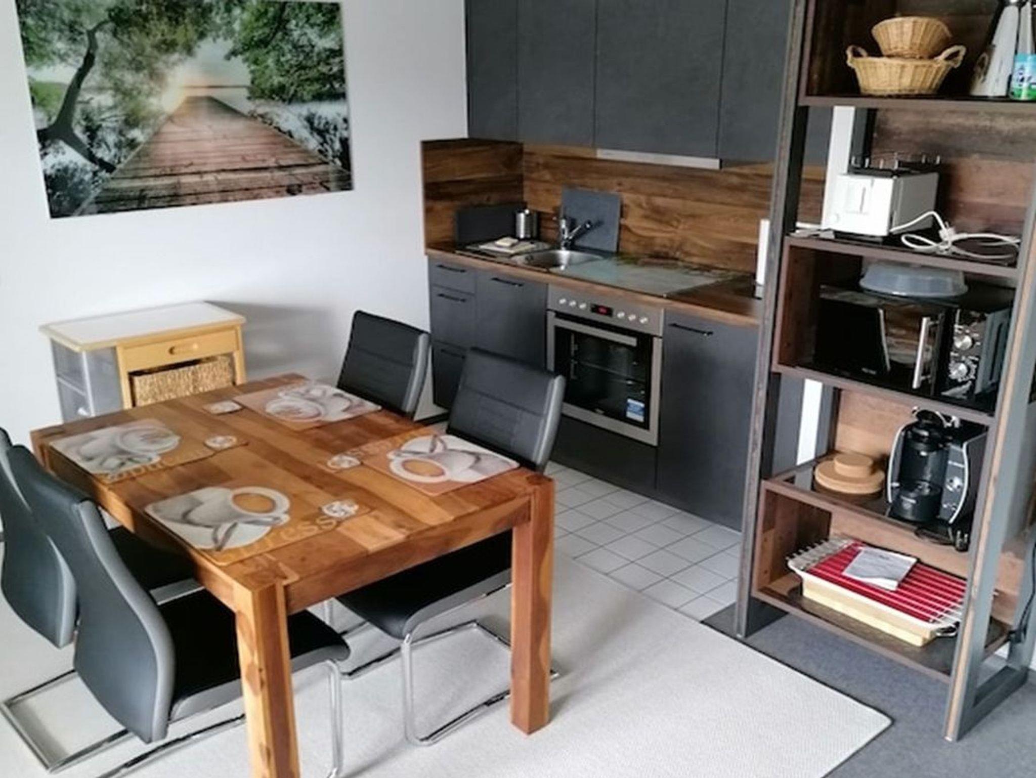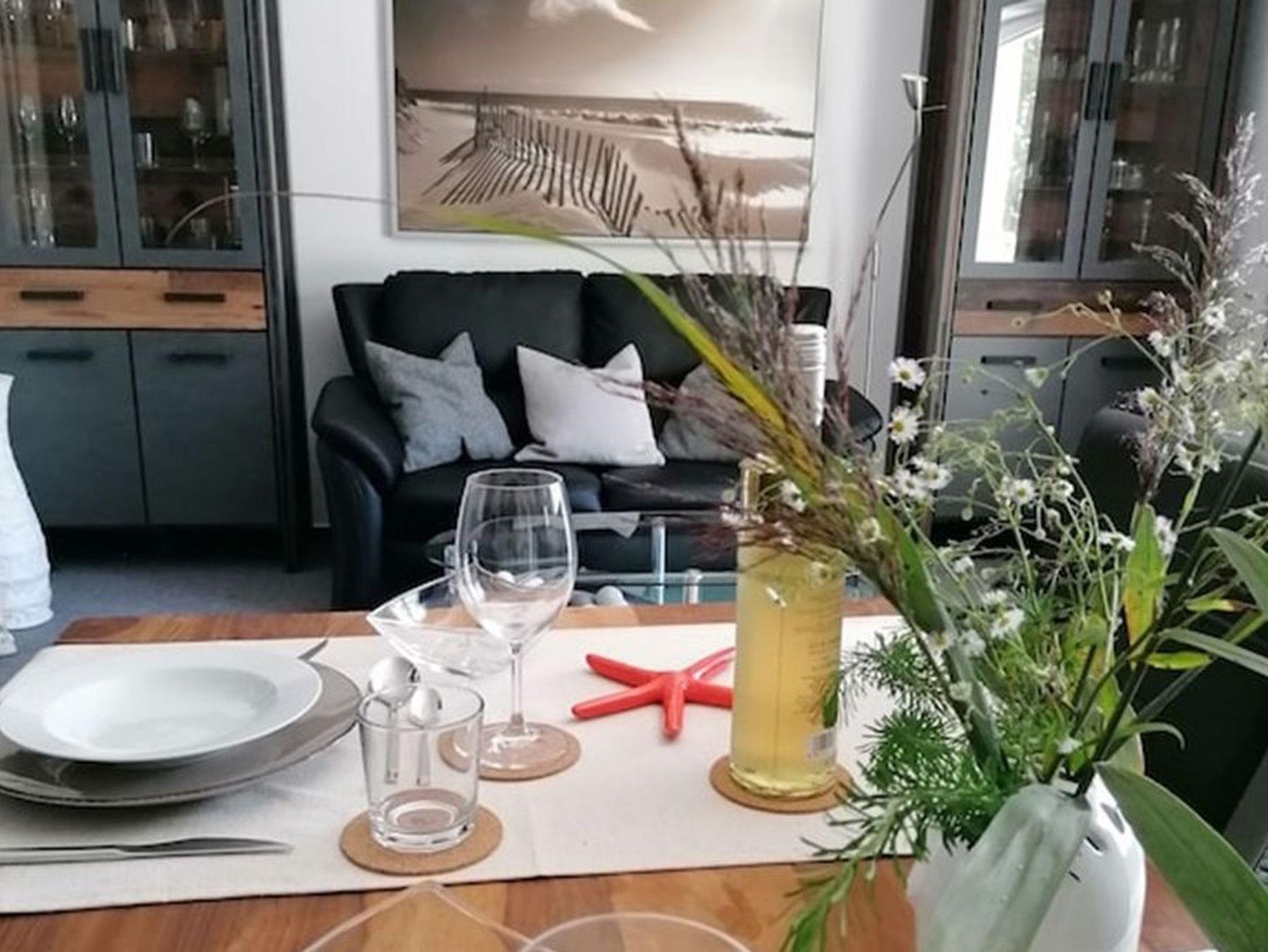 Die Ferienwohnung verfügt über einen Wohn- und Essbereich mit integrierter voll ausgestatteter Küchenzeile (Backofen, Ceranfeld, Kühlschrank, Kaffeemaschine, Wasser- und Eierkocher, Toaster, etc.).
