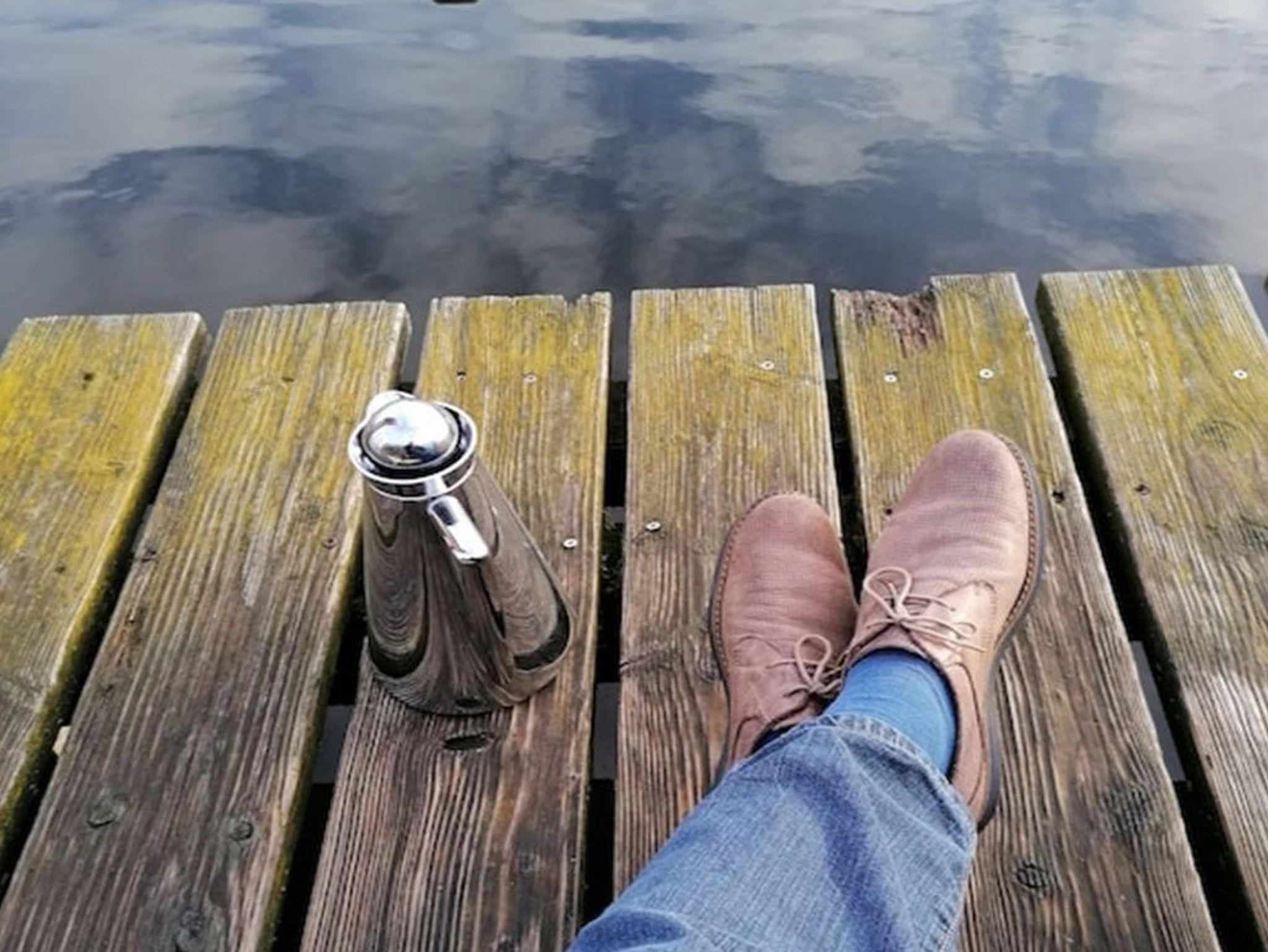 Vom Steg gelangen Sie über eine Trittleiter in den See zum Schwimmen.