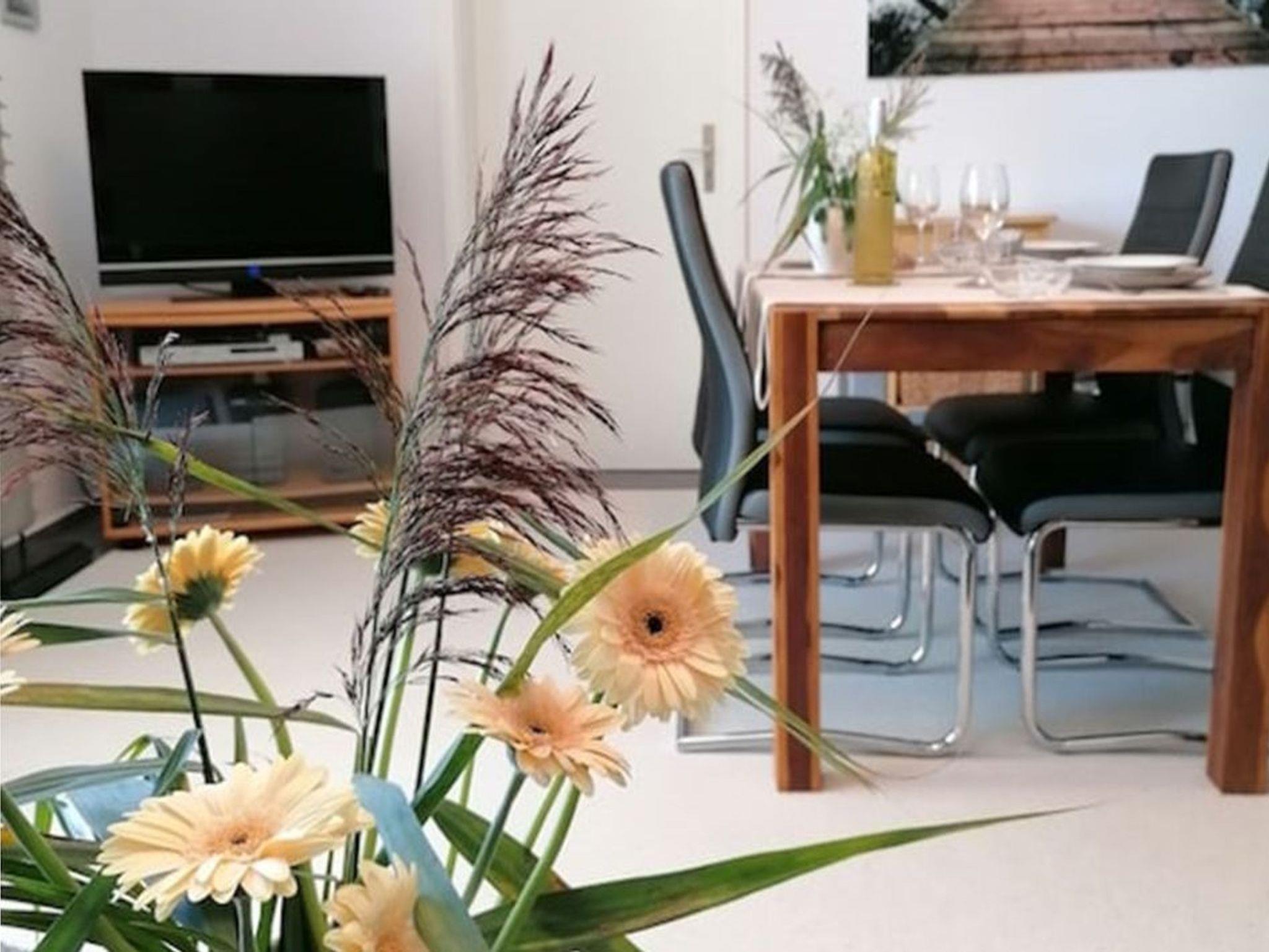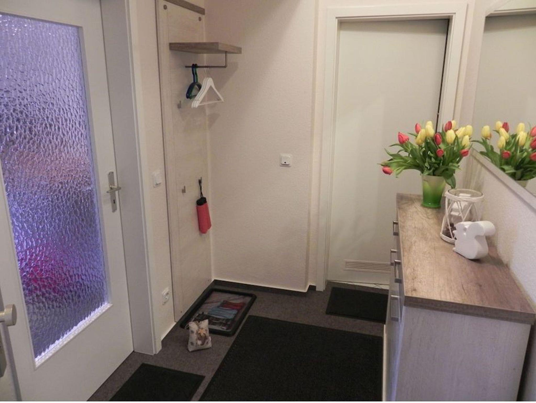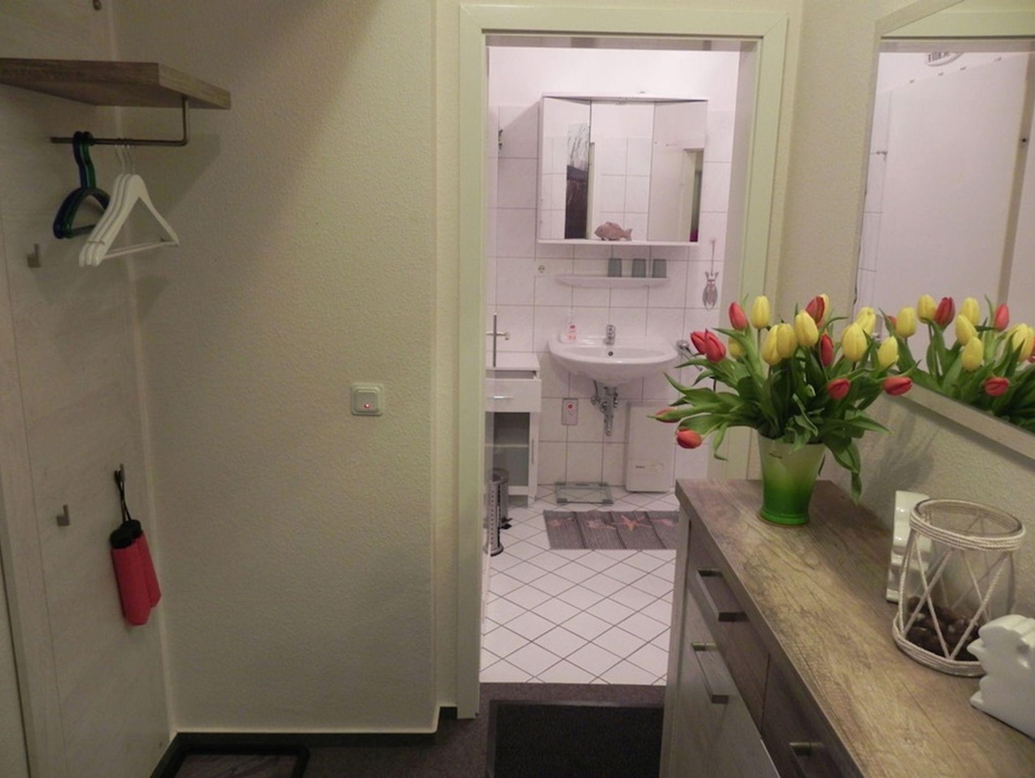 Den Wohn- und Essbereich sowie das Bad erreichen Sie über den Flur der Ferienwohnung. Das Schlafzimmer ist vom Wohnbereich zugänglich.