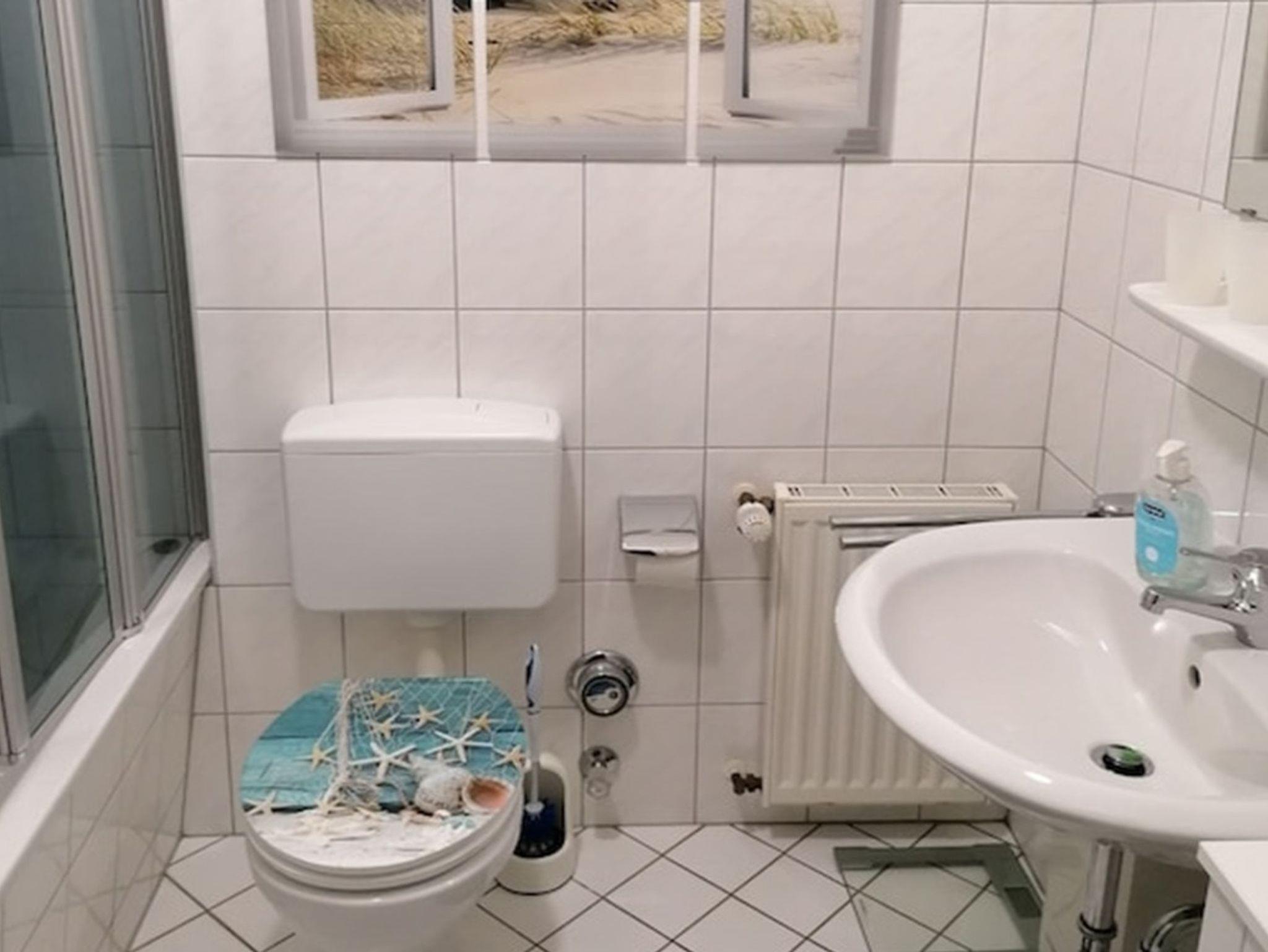 Das Bad ist mit einer Badewanne inkl. Duschabtrennung ausgestattet.