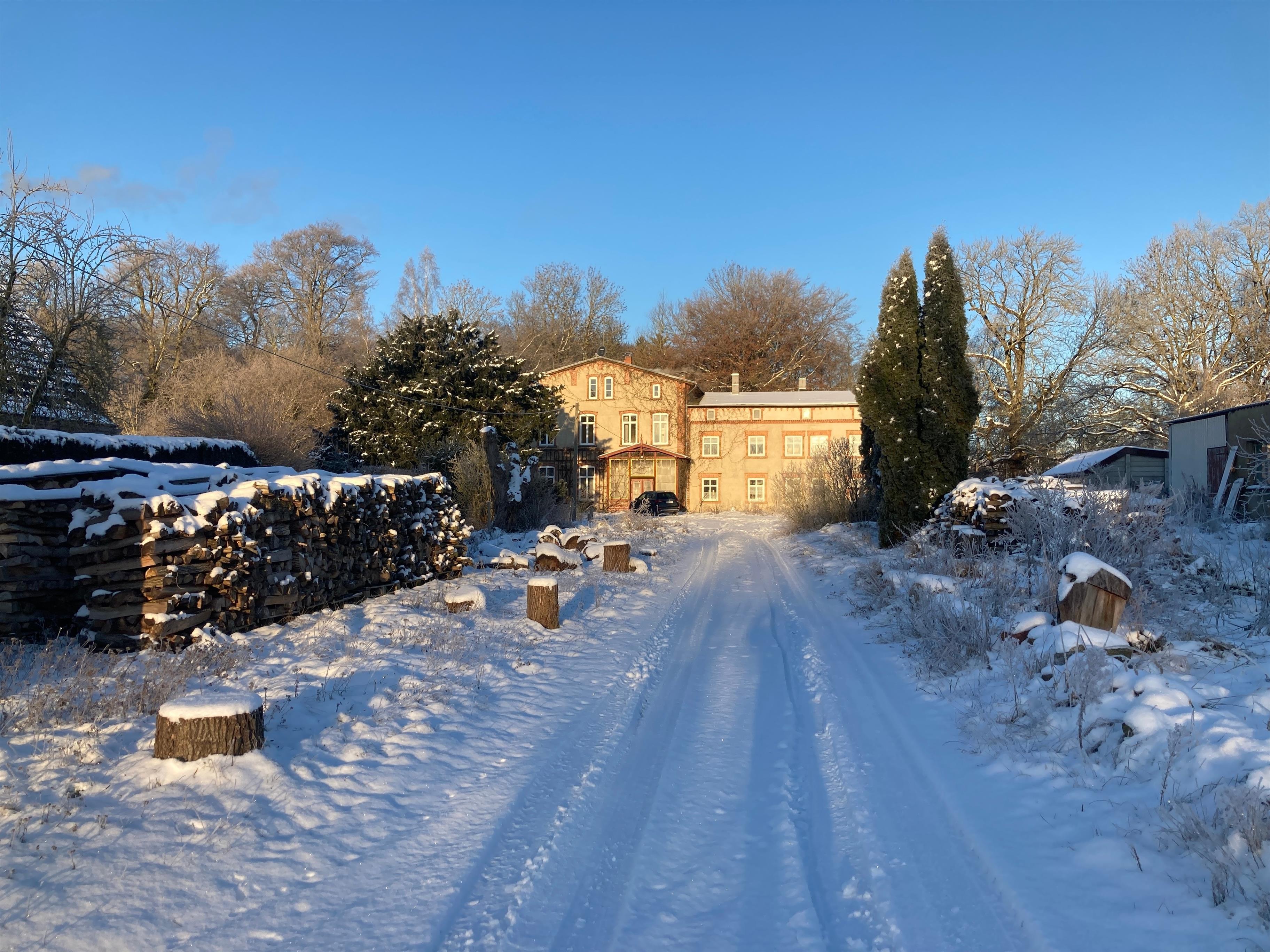 Sie verlassen die schmale Landstraße, folgen dem Kiesweg in dem winzigen Ort Alt-Krassow, biegen am Trafoturm nach links und sehen das Gutshaus Alt-Krassow vor sich. Hier scheint die Welt zu Ende zu sein. Herrliche Natur ringsherum. Hinter dem Haus das private Naturschutzgebiet, Richtung Osten und Südosten der Blick über die Felder und Wiesen hin zum Wald am Krassower See. Sie sind angekommen und richten sich in der großen Ferienwohnung ein. Ihr Urlaub beginnt jetzt.