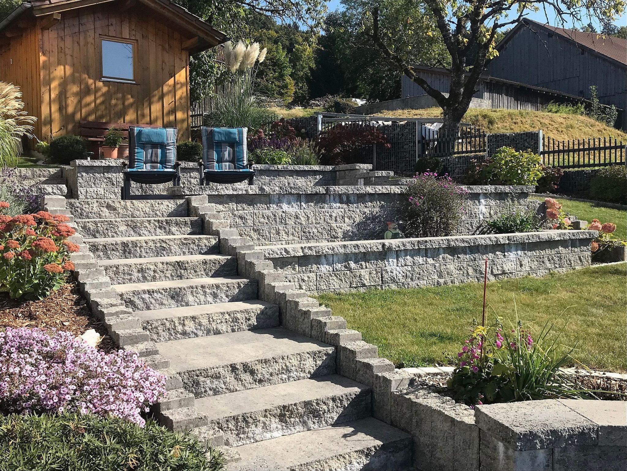 Garten mit Sitzecke, Liegestühle, Spielgeräte.