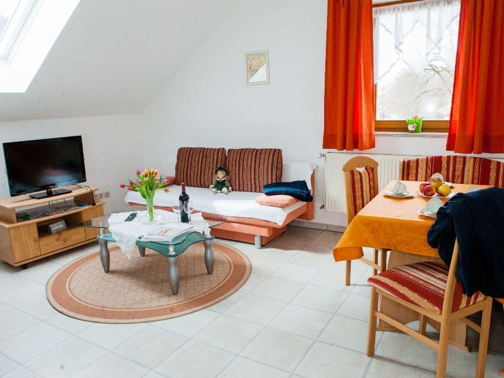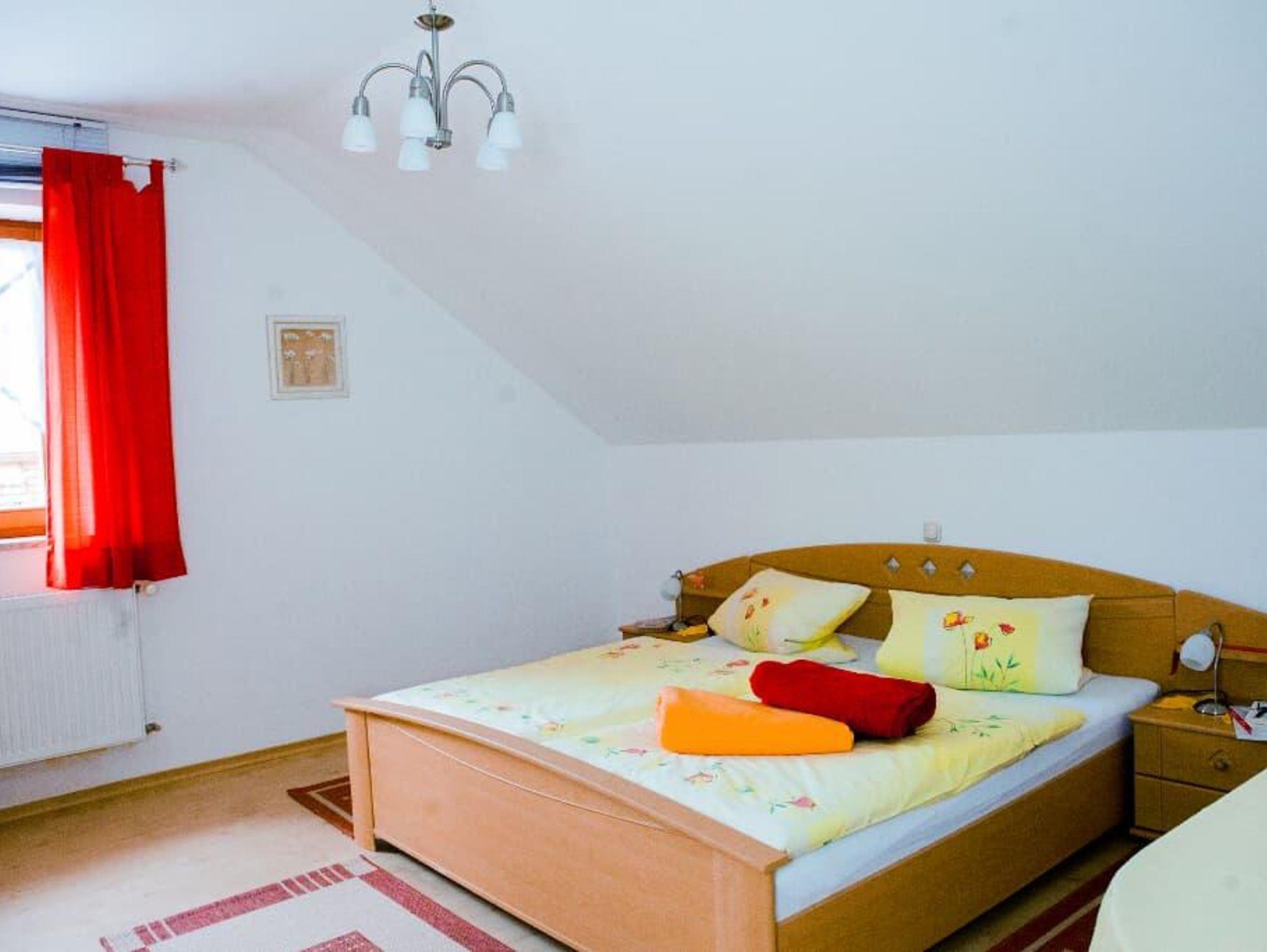 Unsere freundliche und helle Ferienwohnung Blick auf den Hohen Bogen mit 50m2 Wohnfläche Platz für 4 Personen. Die Ferienwohnung verfügt über 2 Schlafzimmer mit jeweils einem bequemen Doppelbett und Zugang zum Balkon. Das gemütliche Wohnzimmer mit Schlafsofa und Flachbild-TV lädt zum Verweilen ein. Die komplett ausgestattete Küche mit Kühlschrank, Herd, Toaster, Kaffeemaschine und Backofen lässt keine Wünsche offen. Die beiden Badezimmer mit Dusche und WC runden das Gesamtbild ab. Vor allem im Sommer können Sie entspannte Abende auf dem Balkon verbringen. Das WLAN und den Parkplatz vor dem Haus können Sie kostenfrei nutzen.