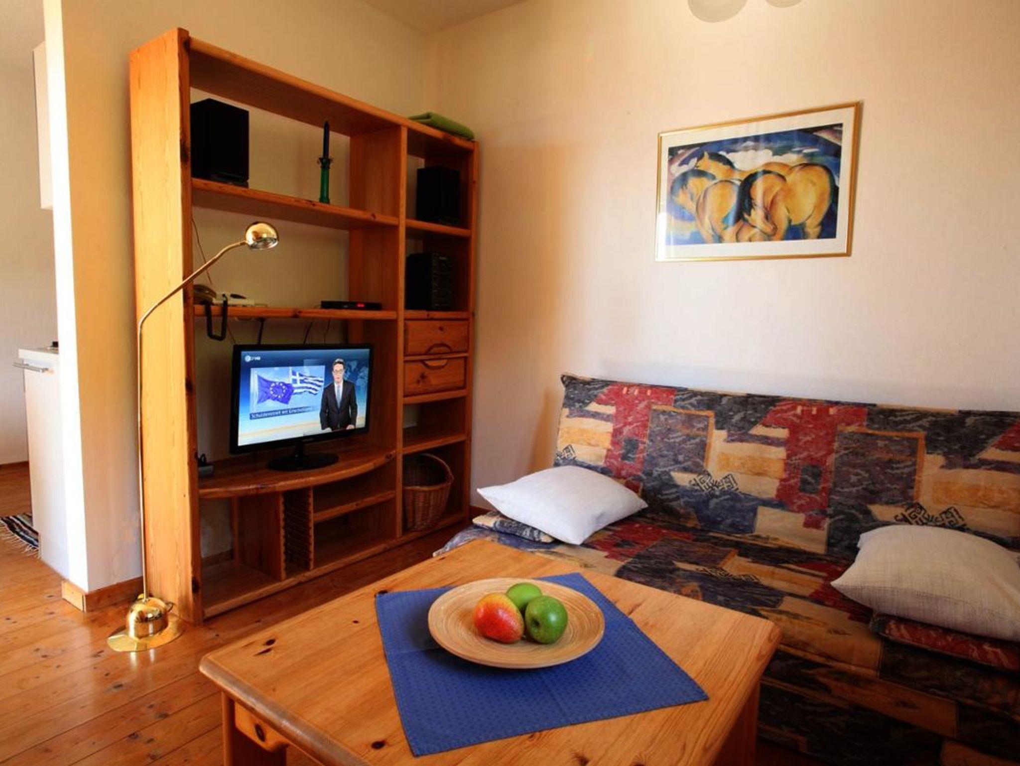 Im Apartment 1 liegen Wohn- und Schlafzimmer auf einer Ebene. Um das Apartment verläuft ein Balkon. Über die anschließende Terrasse gelangt man auf die Liegewiese. Das Apartment hat Morgen und Abendsonne.