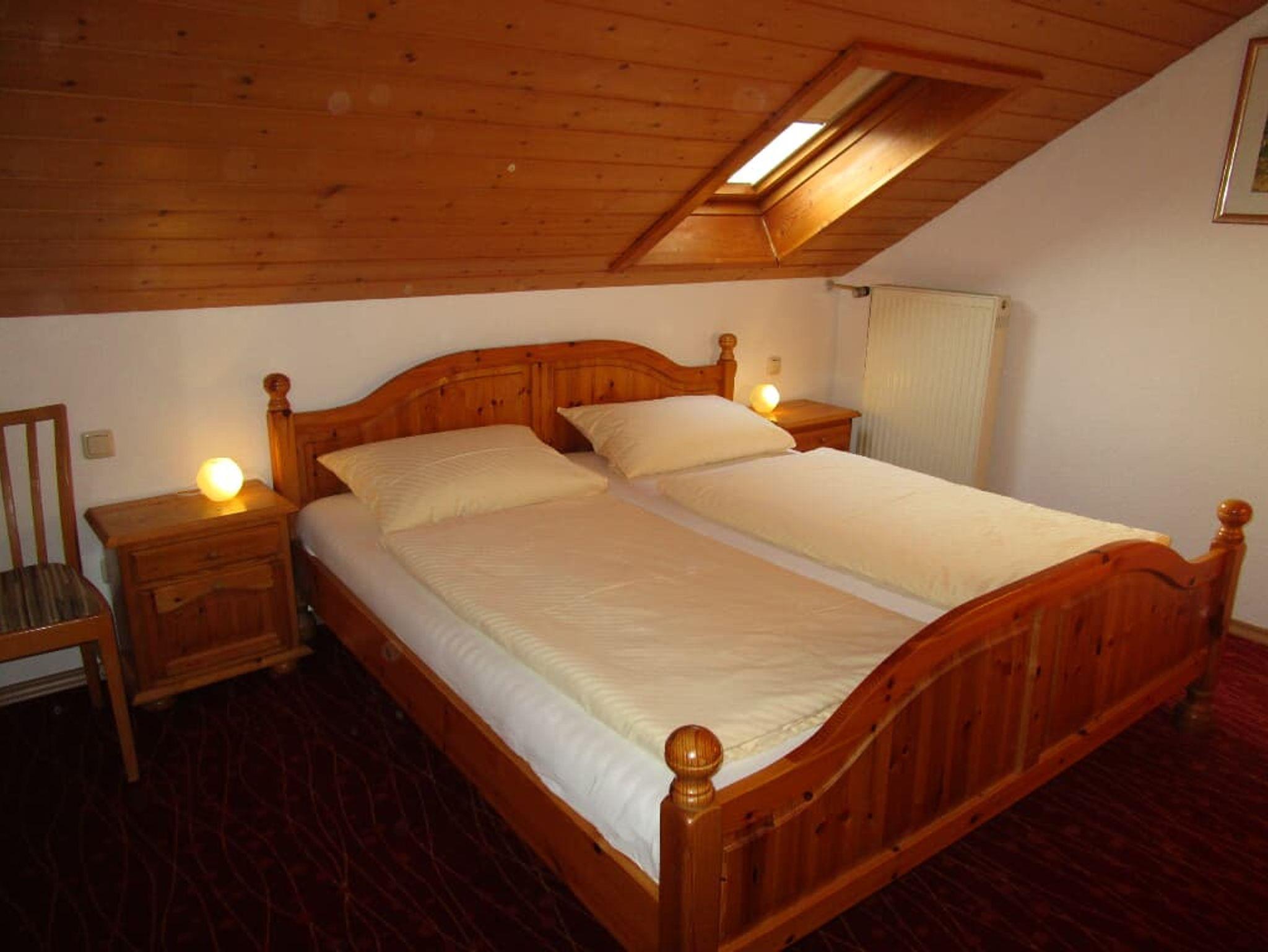Die modern und komfortabel ausgestattete Ferienwohnung für 2 Personen befindet sich im Erdgeschoß (Hochparterre) und ist ohne Stufen erreichbar. Die Ferienwohnung besteht aus 1 Schlafzimmer mit Doppelbett, großem Wohnbereich mit gemütlicher Couchecke, Essecke und Küchenzeile mit Spülmaschine, Mikrowelle, Kaffeemaschine, Wasserkocher und Toaster, SAT-TV, Radio, Dusche/WC und Balkon mit Blick in unseren großen Garten. kostenloses W-LAN. Auf Wunsch - Brötchenservice! Für Nichtraucher!