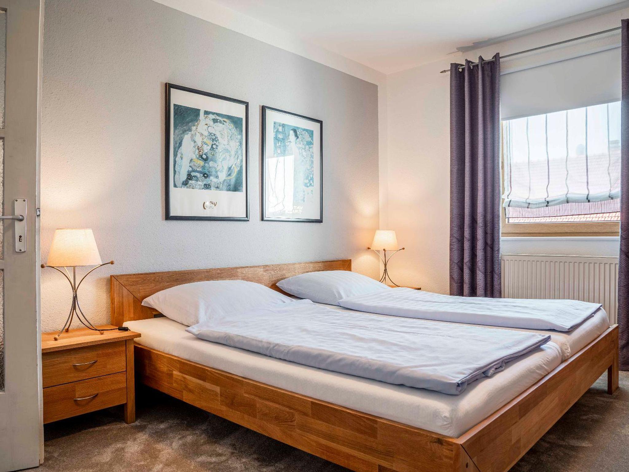 Die großzügig geschnittene und neu renovierte Ferienwohnung im 1. Stock ist ideal für Familien oder 2 Paare. Die Wohnung besteht aus 1 Doppel-Schlafzimmer, 1 Schlafzimmer mit 2 getrennt stehenden Betten, (mit Zustell- oder Kinderbett), gemütlichem Wohnzimmer mit SAT-TV, Radio, große Wohnküche mit Küchenzeile, Spülmaschine, Mikrowelle, Kaffeemaschine, Wasserkocher und Toaster, Dusche und sep. WC, kostenloses W-LAN. Auf Wunsch - Brötchenservice! Wir bitten unsere Gäste in der Wohnung nicht zu rauchen. Haustiere nicht erlaubt!
