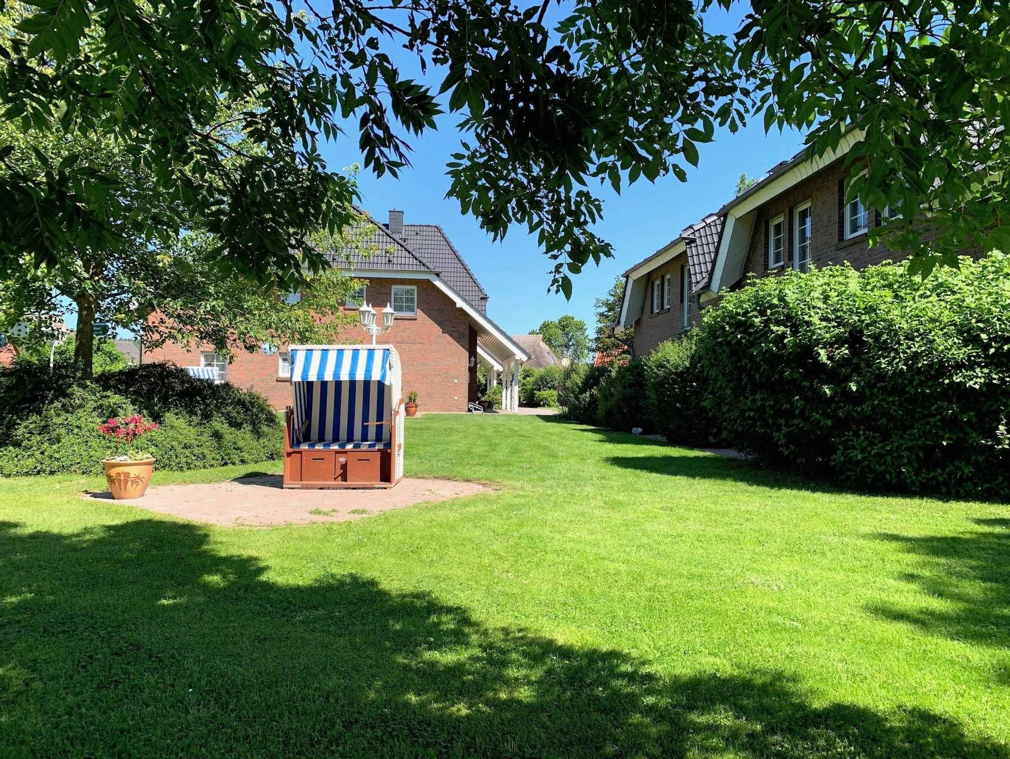 Die große Gartenanlage fügt sich harmonisch in die Landschaft ein und bietet viel Platz zum Erholen, Entspannen und Spielen. Im Garten befinden sich Terrassen mit Sitzgruppen, Strandkörbe, eine Liegewiese, Liegestühle und Sonnenschirme. Außerdem gibt es einen Grillplatz und einen Kinderspielplatz.