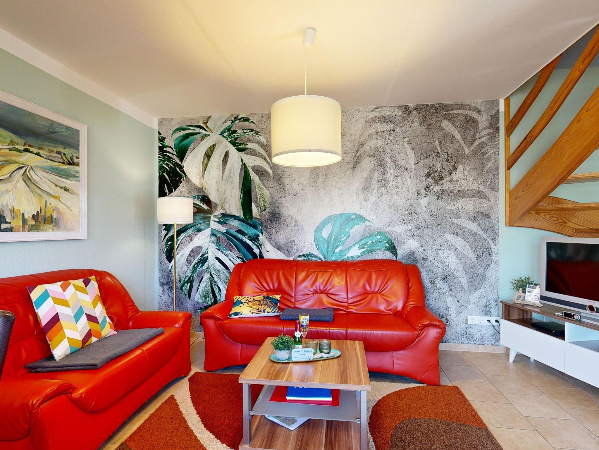 * Wohnzimmer (30 m²): Couchgarnitur, Sat-TV, Radio mit CD, DVD-Player, WLAN