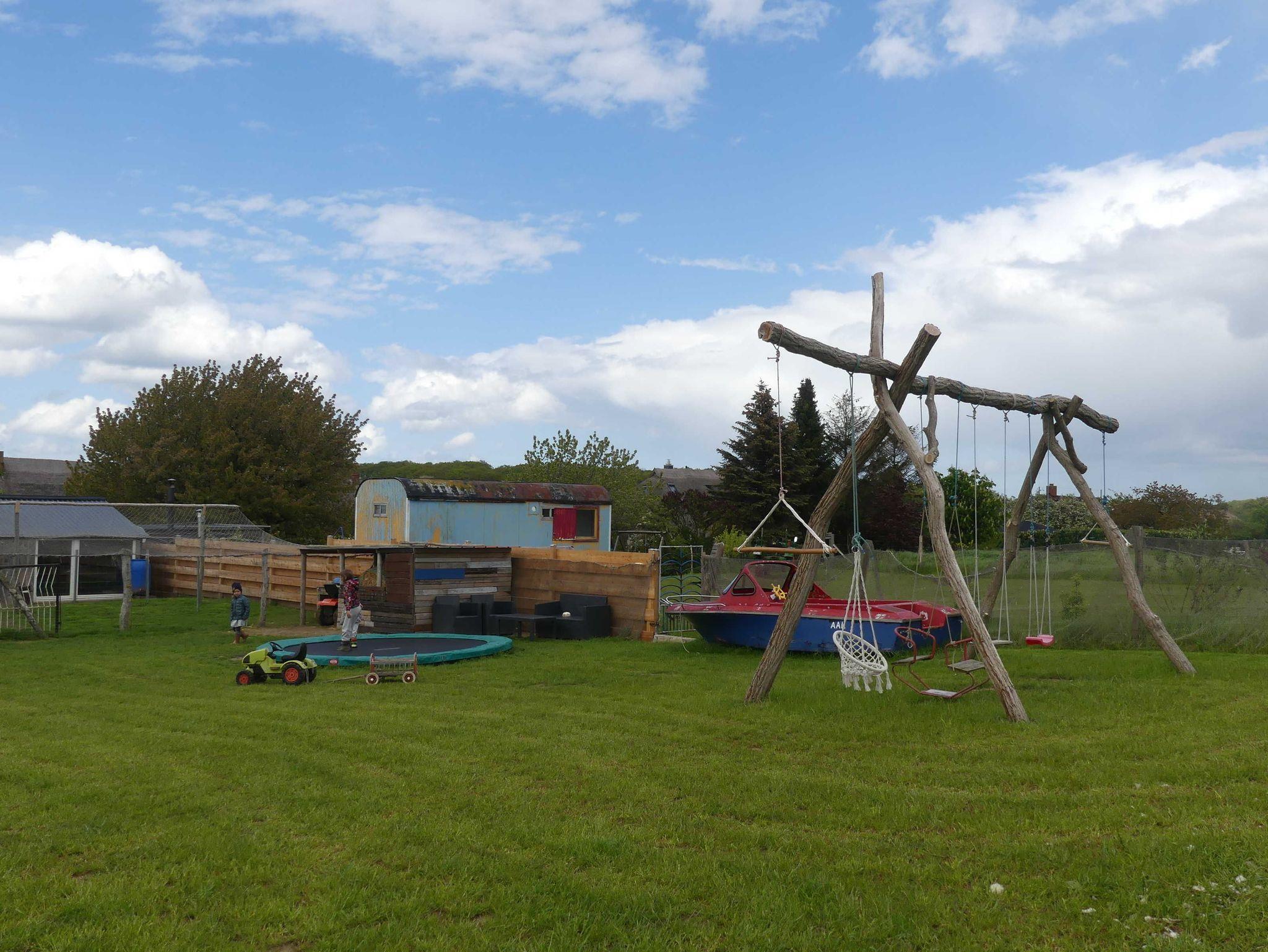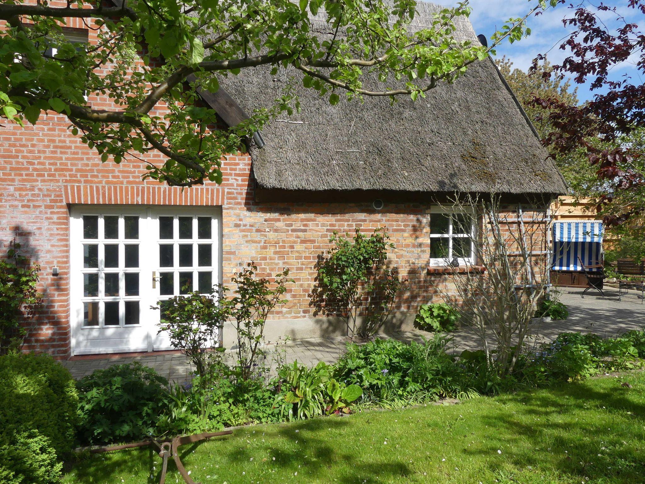 * großer Garten mit hübschen Blumenrabatten und altem Obstbaumbestand (4 Liegen vorhanden)