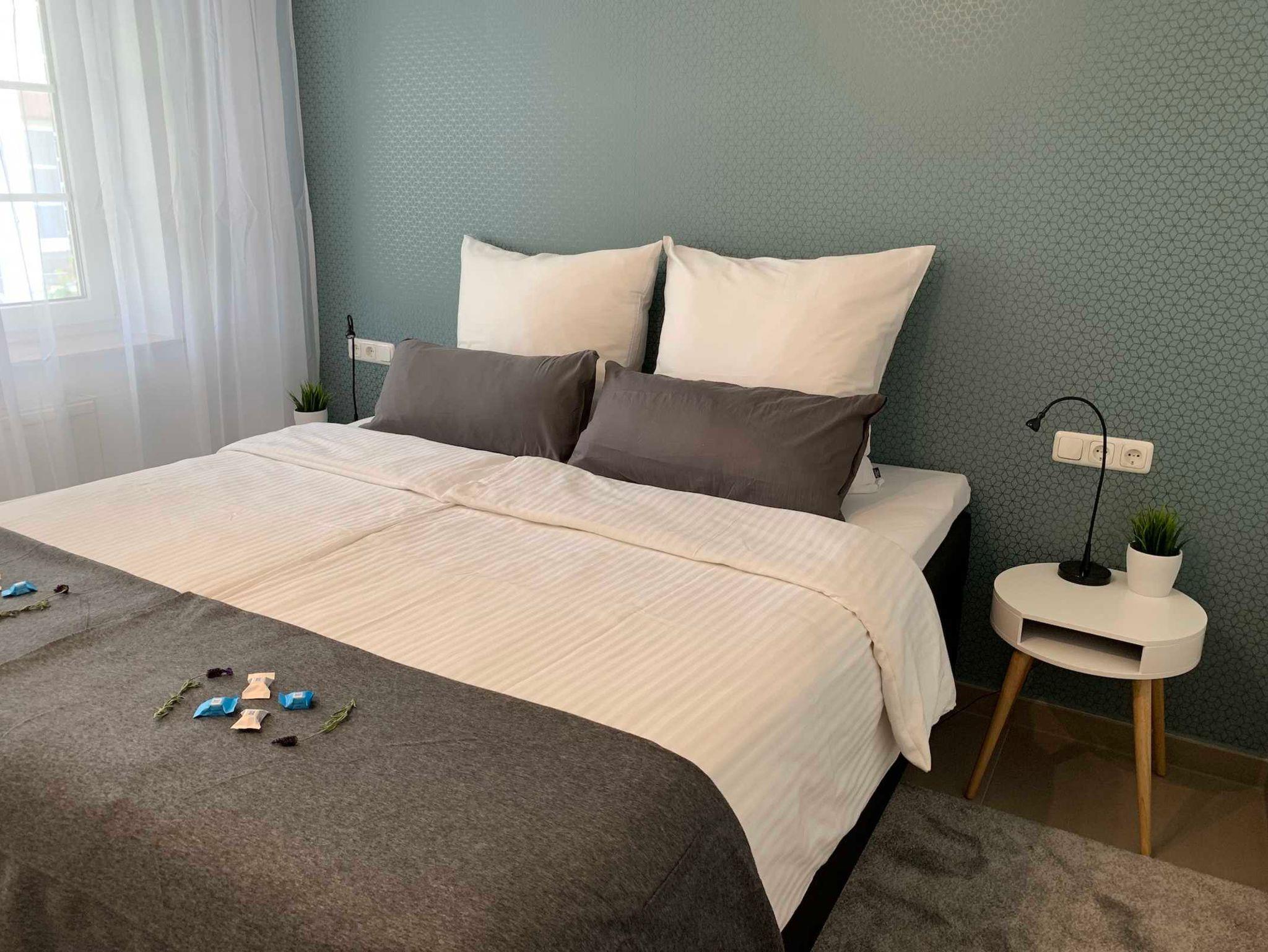 • 1 Schlafzimmer mit Boxspringbett (1,80 m x 2,00 m)
