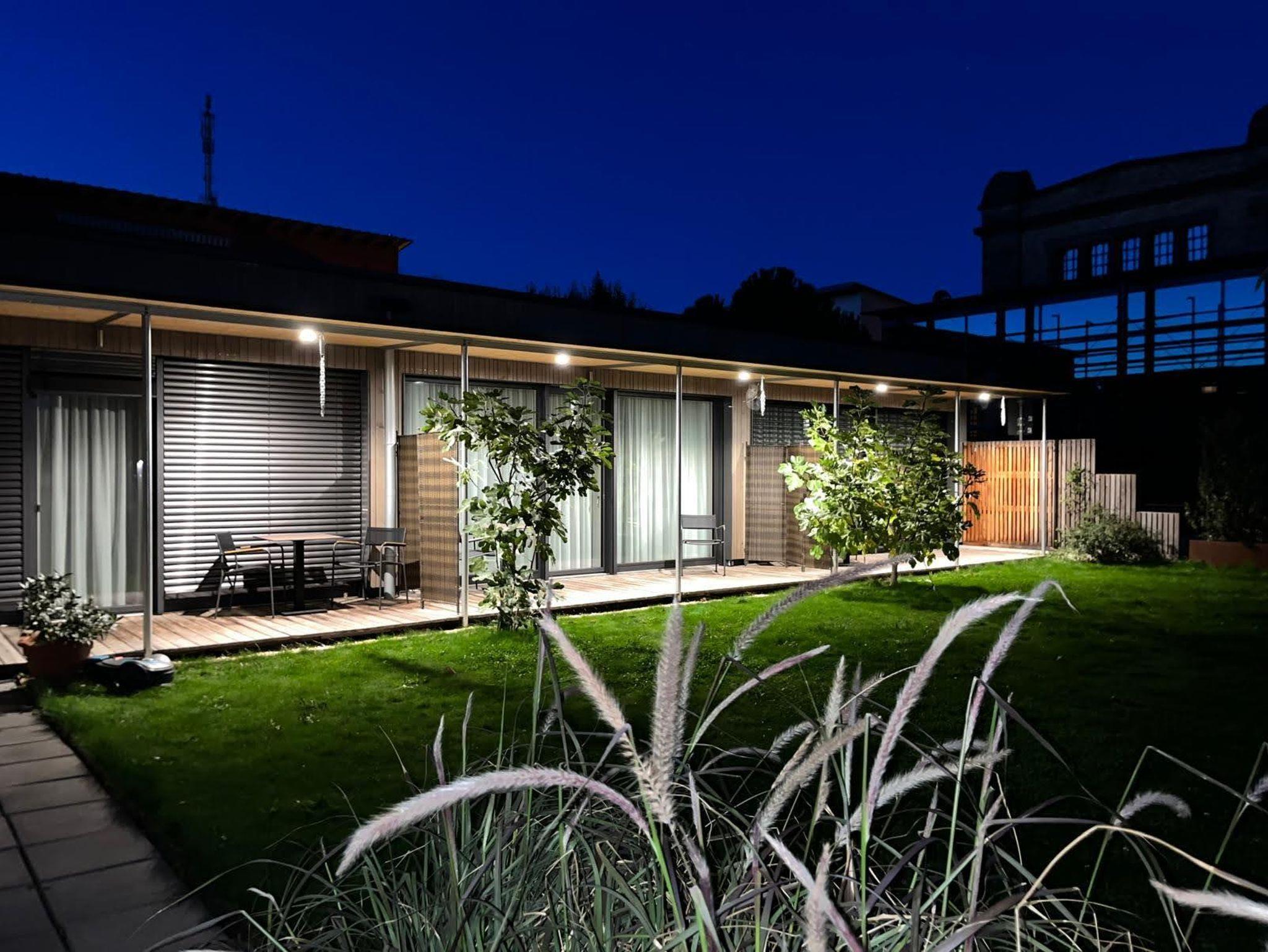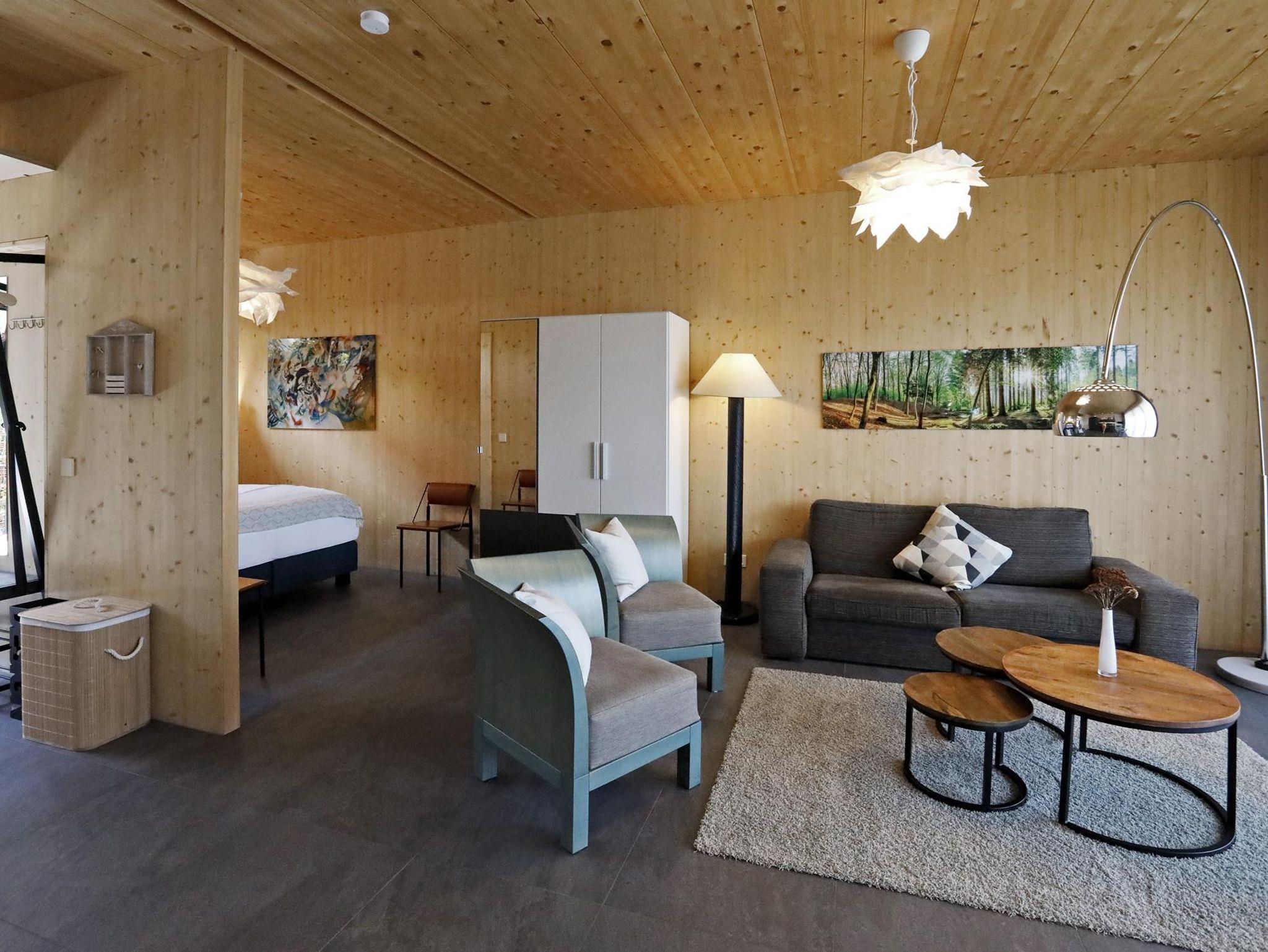 Sie liegen zentral an einem ruhigen Stadtplatz und sind Teil eines Ensembles aus historischem Wassertürmchen und Neubau. Dieser neue Holzbau ist in ökologischer Massivholzbauweise erstellt. Besonderes Augenmerk haben wir auf die Verwendung baubiologisch einwandfreier Baustoffe gelegt. Das begrünte Flachdach wirkt klimatisierend, so dass wir bislang auf eine aufwendige Klimatechnik verzichten konnten. Die gewählte Baukonstruktion schirmt das Gebäude gegen gesundheitsschädliche Strahlungen wie Radon und elektromagnetische Wellen ab. Nach ausgedehnten Wanderungen im Pfälzer Wald finden unsere Gäste in den naturbelassenen Holzinnenräumen eine wohlige Atmosphäre. Die barrierefreie, schwellenlose Gestaltung der Ferienanlage machen den Aufenthalt für Senioren genauso interessant wie für sportlich aktive junge Feriengäste.