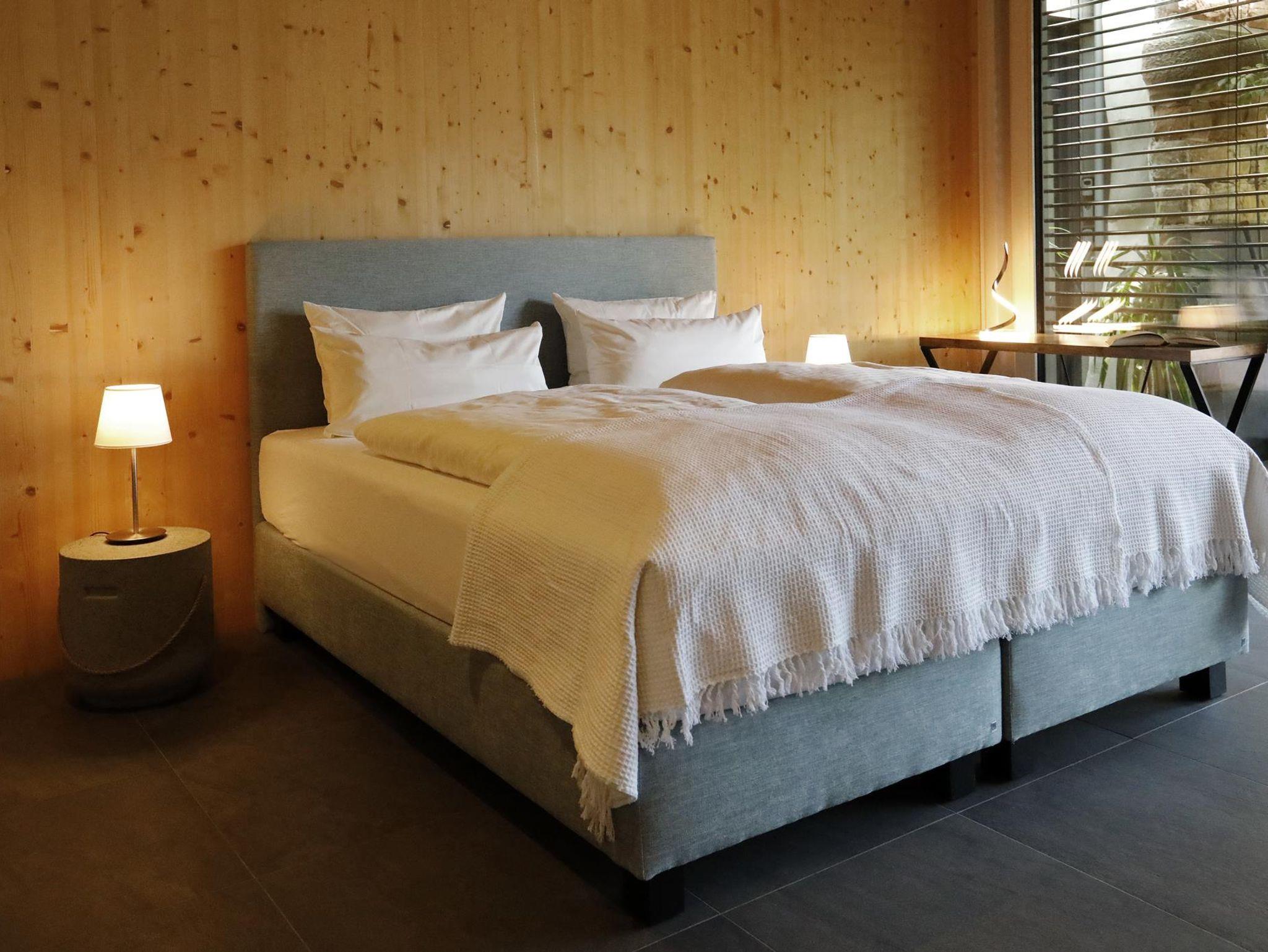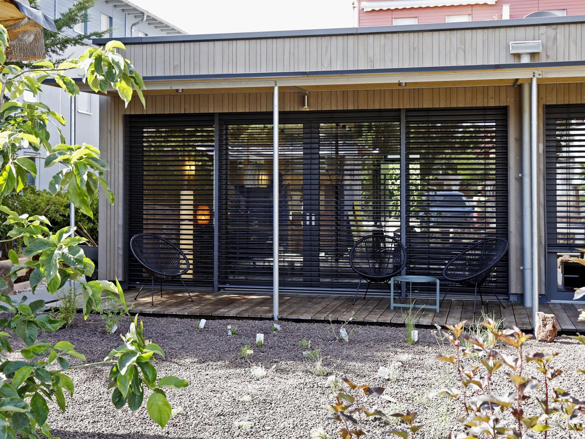 Sie liegen zentral an einem ruhigen Stadtplatz und sind Teil eines Ensembles aus historischem Wassertürmchen und Neubau. Dieser neue Holzbau ist in ökologischer Massivholzbauweise erstellt. Besonderes Augenmerk haben wir auf die Verwendung baubiologisch einwandfreier Baustoffe gelegt. Das begrünte Flachdach wirkt klimatisierend, so dass wir bislang auf eine aufwendige Klimatechnik verzichten konnten. Die gewählte Baukonstruktion schirmt das Gebäude gegen gesundheitsschädliche Strahlungen wie Radon und elektromagnetische Wellen ab. Nach ausgedehnten Wanderungen im Pfälzer Wald finden unsere Gäste in den naturbelassenen Holzinnenräumen eine wohlige Atmosphäre. Die barrierefreie, schwellenlose Gestaltung der Ferienanlage machen den Aufenthalt für Senioren genauso interessant wie für sportlich aktive junge Feriengäste.