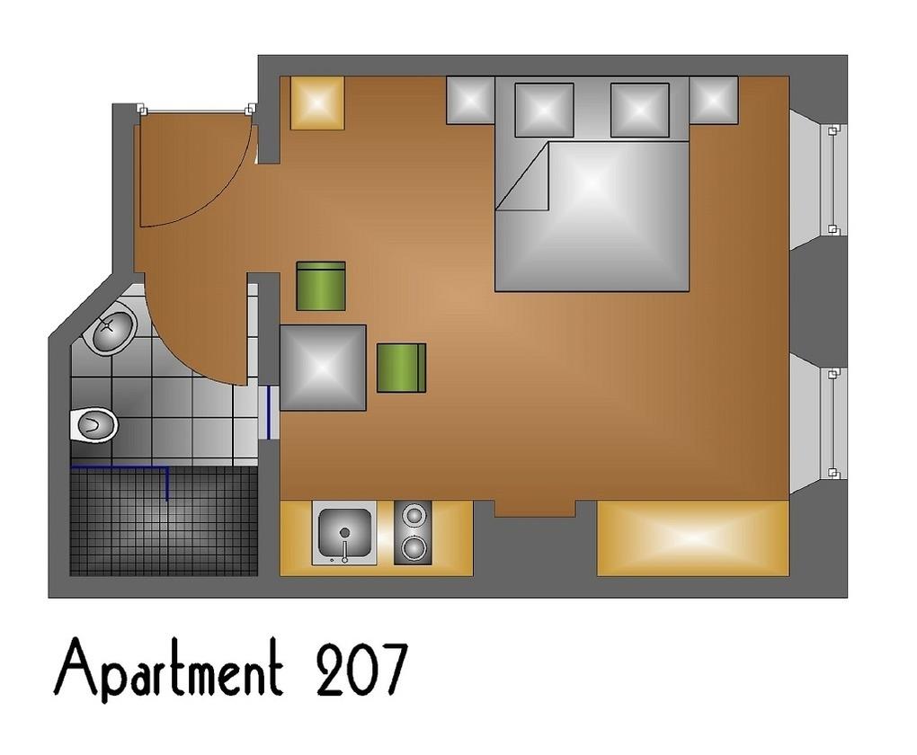 Das Apartment ist Teil eines Aparthotels. Jedes Zimmer hat einen eigenen Eingang mit Bad, Handtücher und Bettwäsche.