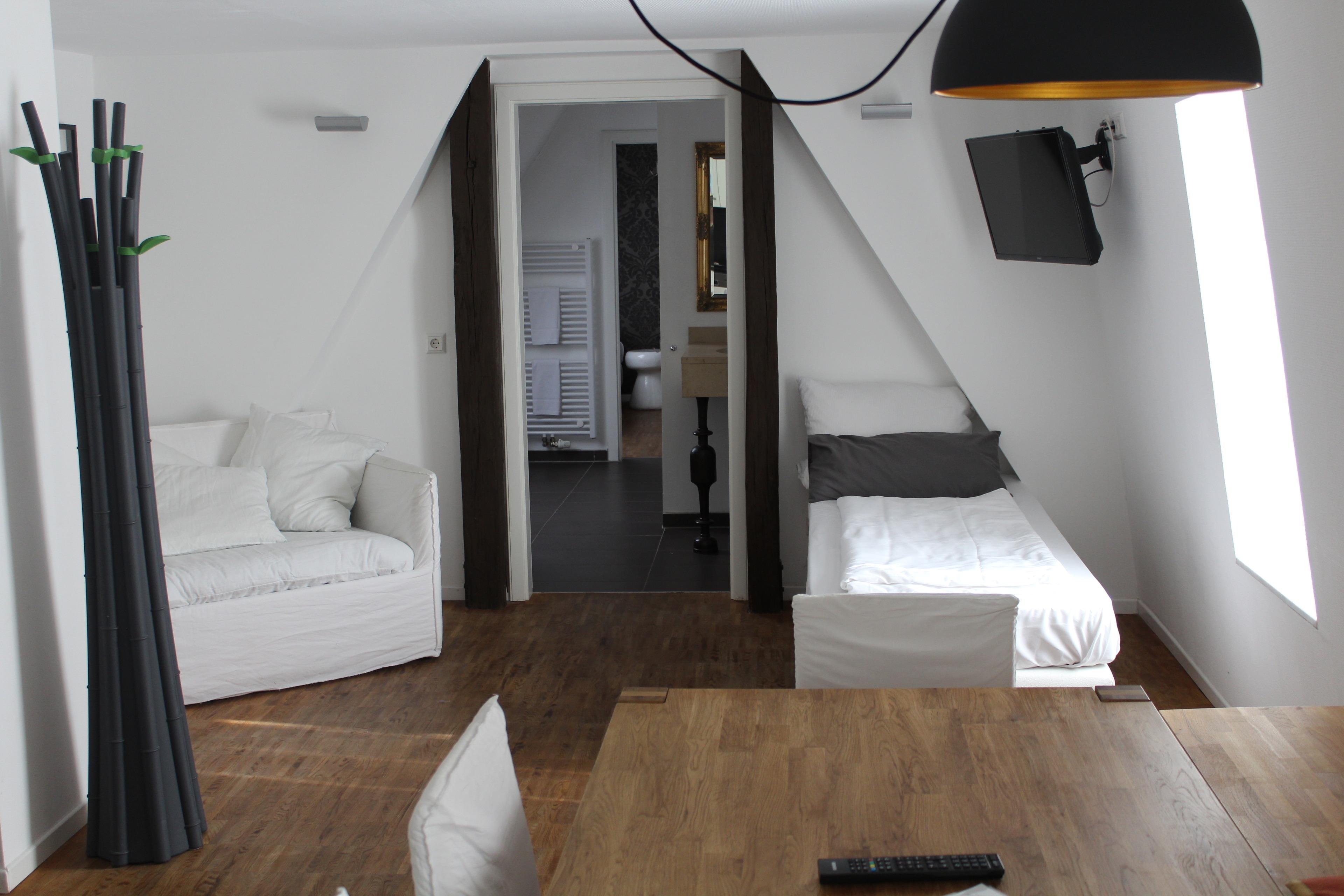 Das Apartment ist Teil eines Apart-Hotels im Zentrum von Landau.